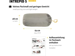Inhoud: 1x buitentent, 1x binnentent, 4 scheerlijnen, 8 haringen, 1 reparatie zeil, 1 tent opbergtas, 1 haringen opbergtas, 1 grondzeil