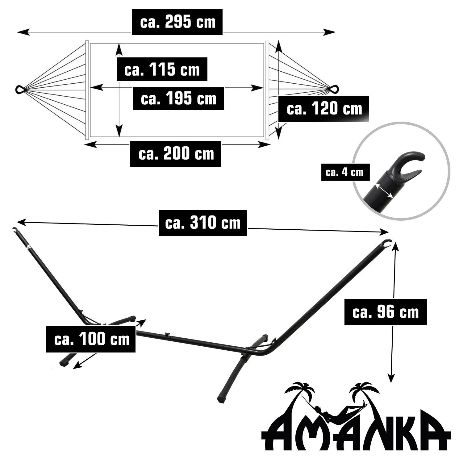 – Ca. 310 x 100 x 96 cm
