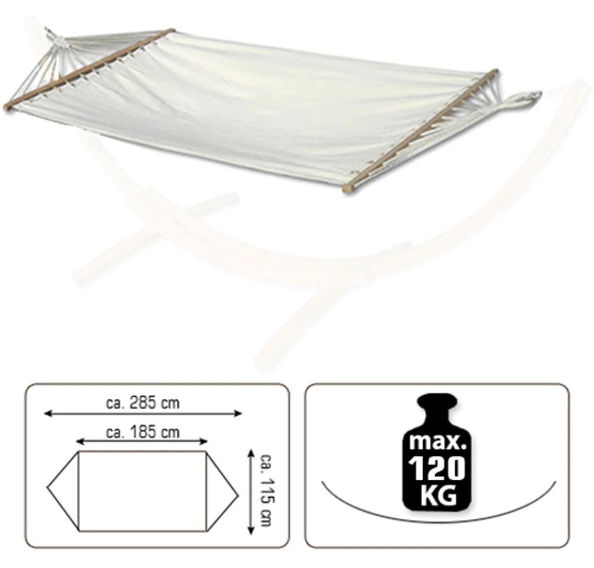 Natuurlijk kan de stoffen hangmat tegen een paar druppels – hij is snel weer droog. In geval van een hevige regenbui moet u hem naar binnen brengen.