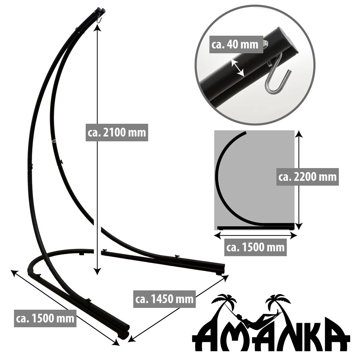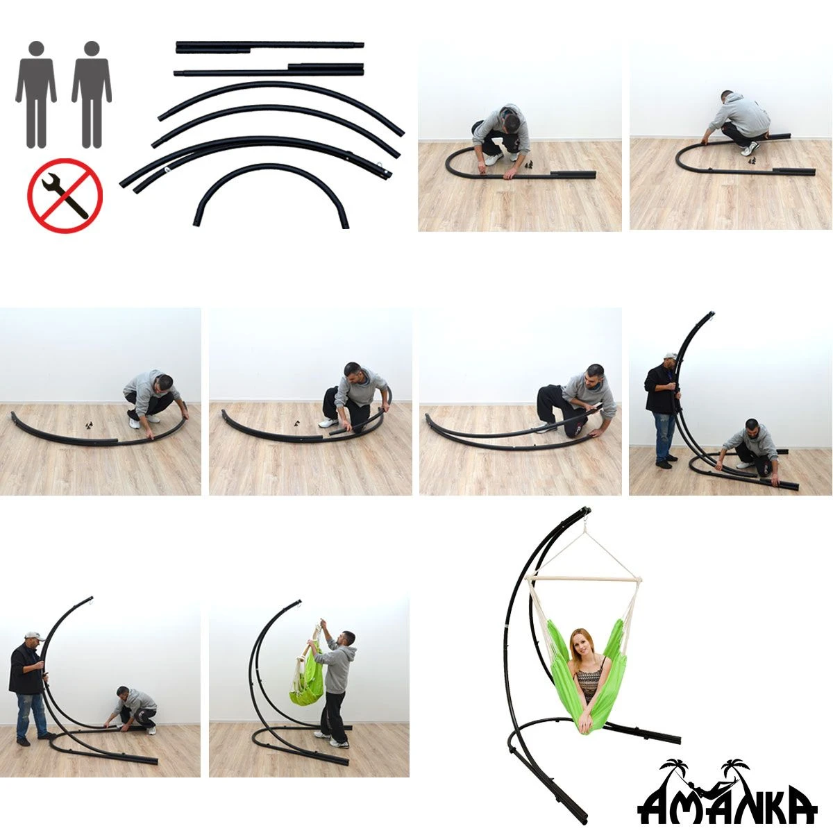 Met de functionele stalen buisstandaard hoeft u zich geen zorgen te maken over de ophanging van uw hangstoelen en is er geen vervelende plafondinstallatie nodig.