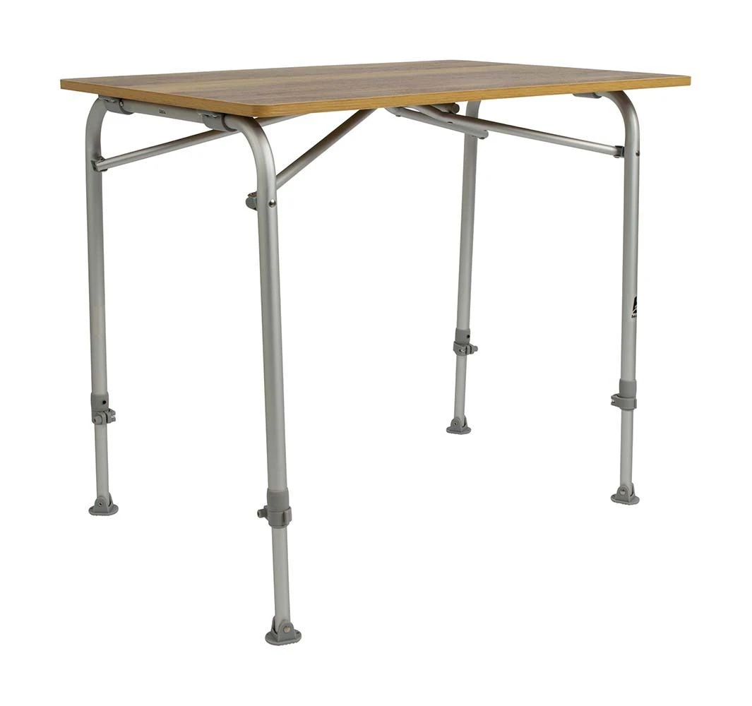 Een lichtgewicht maar zeer stabiele campingtafel. De tafel heeft een glasfiber top welke hittebestendig en watervast is. Ook heeft de tafeltop een kunststof rand. Het frame is van aluminium en de campingtafel is voorzien van voetjes met stabilisatoren zodat de tafel op iedere ondergrond stevig staat. Tevens zijn de poten in hoogte te verstellen (traploos).
