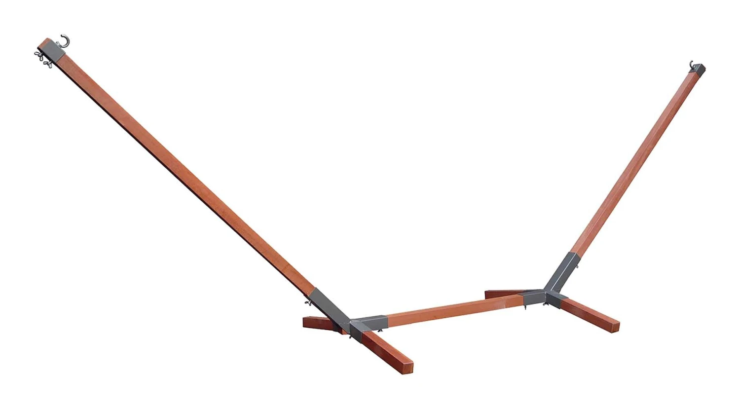 Een hardhouten hangmatstandaard. Deze is gemaakt van Massaranduba FSC Pure hardhout. Geschikt voor hangmatten met een totale afmeting van 250 tot 325 centimeter. Hoogte verstelbaar tot een maximale hoogte van 115 centimeter en de spanwijdte is verstelbaar van 310 tot 335 centimeter. Maximaal draagvermogen: 120 kilogram.