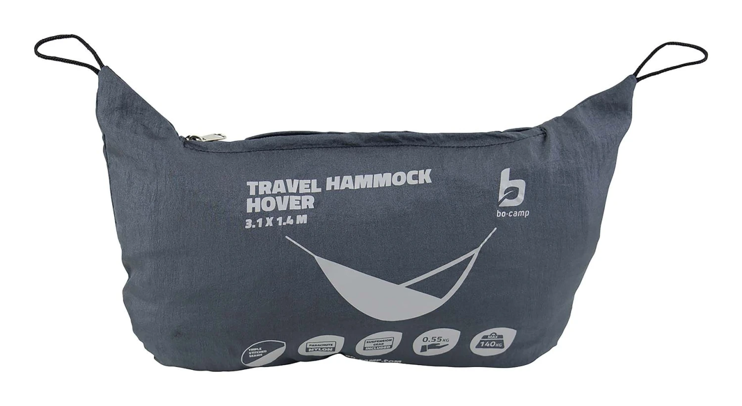 Een lichtgewichte reishangmat van parachutestof. Door de parachutestof is de hangmat luchtdoorlatend en neemt deze geen vocht op. Zorgt voor optimaal ligcomfort en doordat deze hangmat tot een klein pakketje is op te vouwen is deze eenvoudig mee te nemen voor onderweg. Wordt compleet geleverd met karabijnhaken