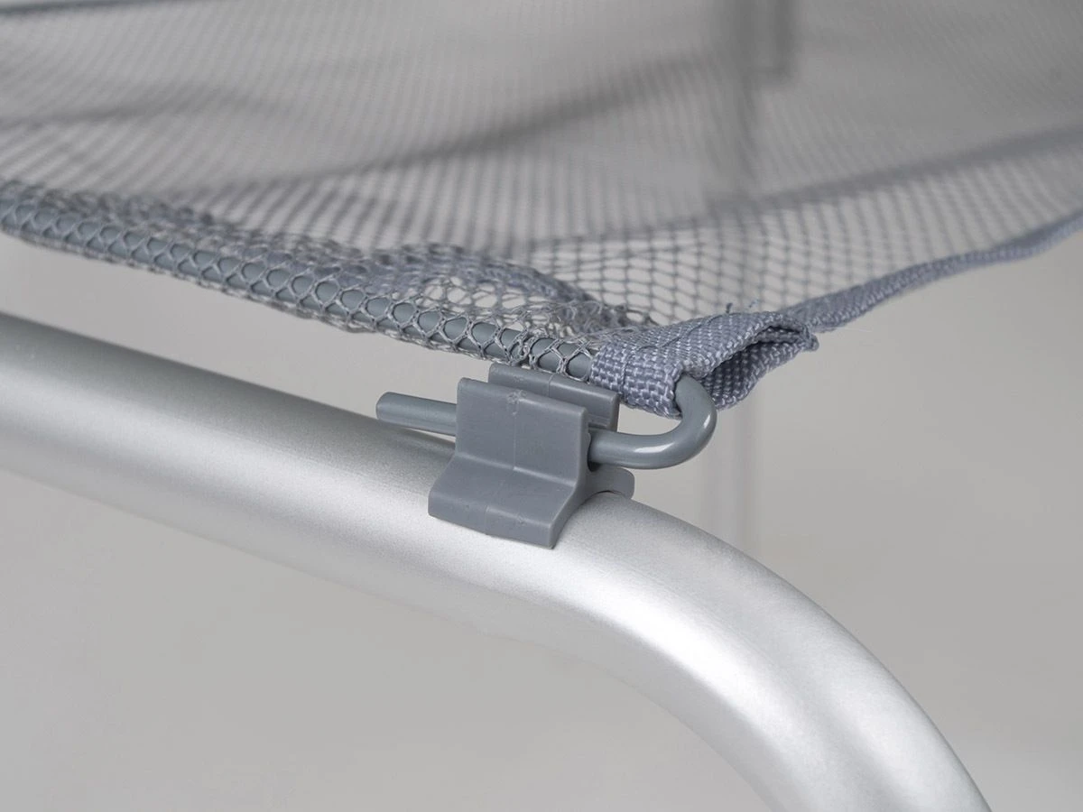 De tafel is voorzien van een lichtgewicht aluminium onderstel en een aluminium blad. De tafel is dus water- en hitte bestendig!