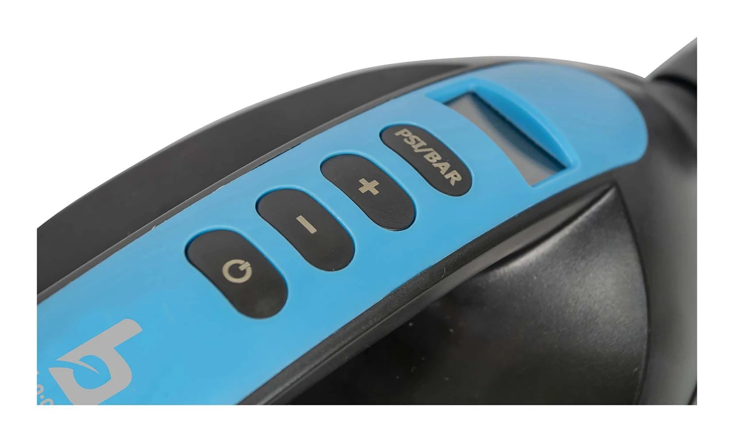 Een zeer handige elektrische pomp met drukmeter. Ideaal voor het snel opblazen van tenten en SUP’s. Geschikt voor een 12 Volt (auto)aansluiting. De pomp beschikt over een luchtstroom van 90 liter per minuut. Stel eerst het aantal PSI/Bar in en de pomp stopt automatisch wanneer de gewenste druk bereikt is. Wordt geleverd met verschillende verloopstukken, waaronder één voor een tent, en één voor een SUP.