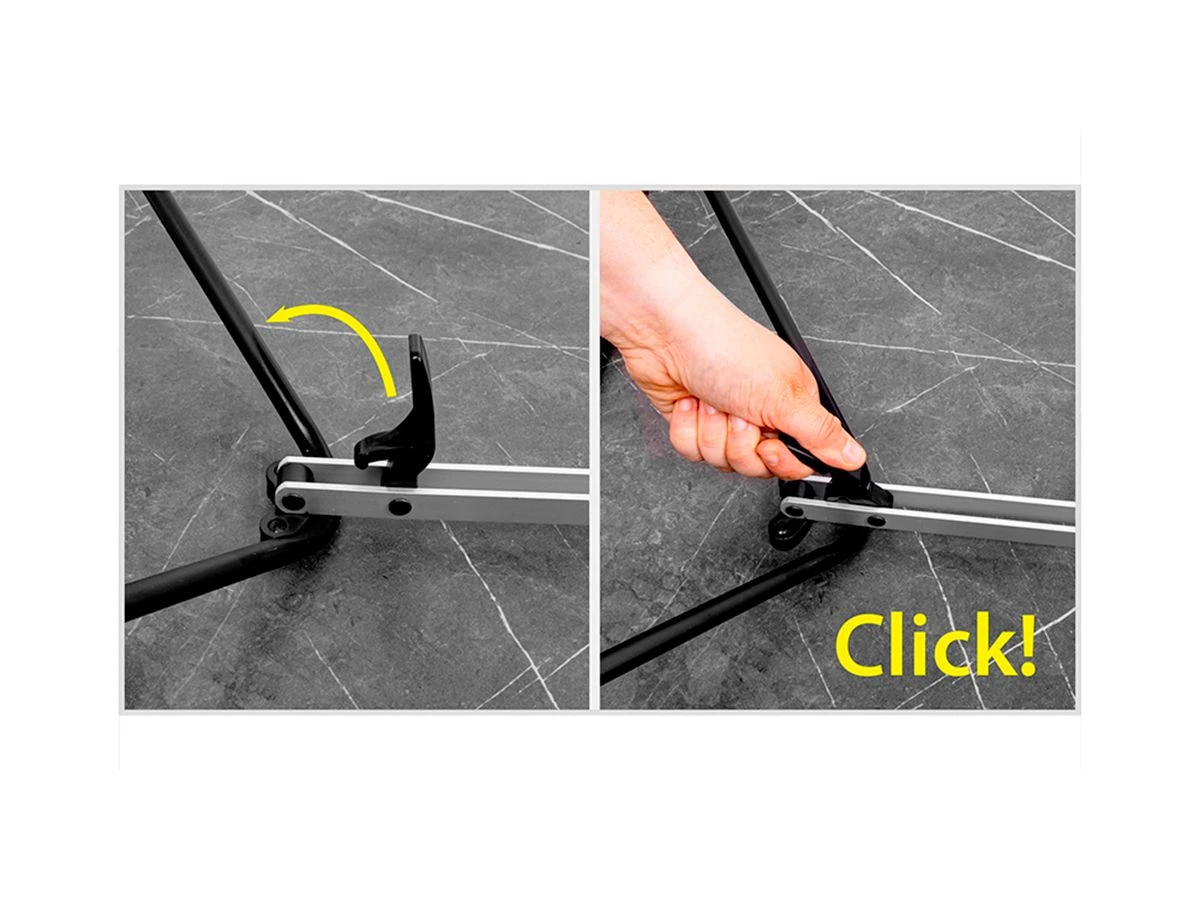 Het geheim van de Elù ligt in zijn hoogwaardige aluminium constructie en het gepatenteerde klapmechanisme. In seconden is de tafel klaar voor gebruik. Het lichte tafelblad van hoogwaardige materialen is weerbestendig en hittebestendig.