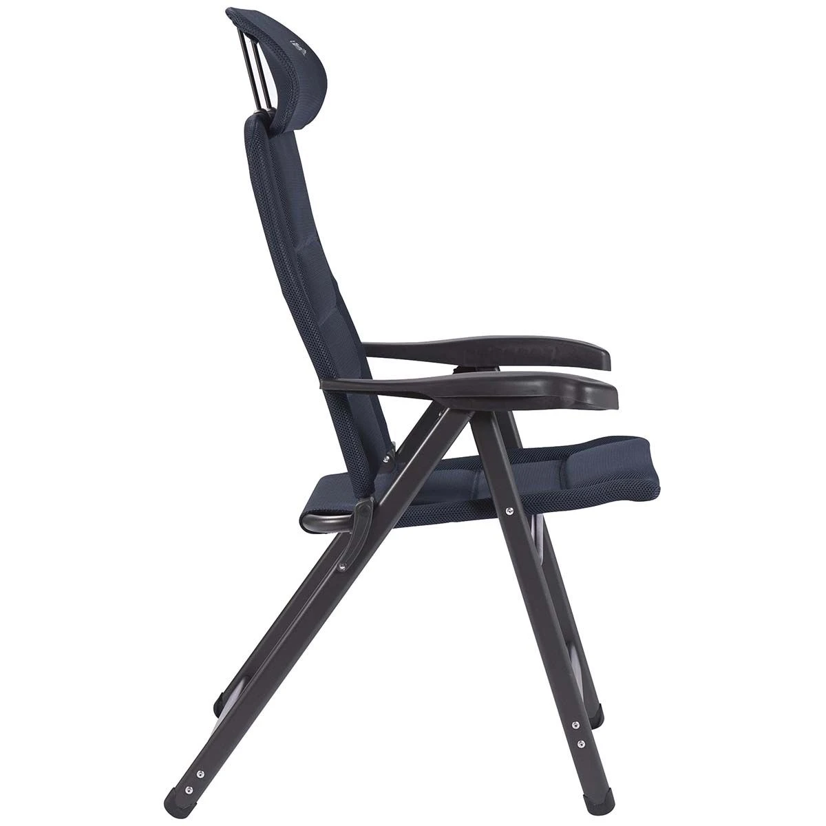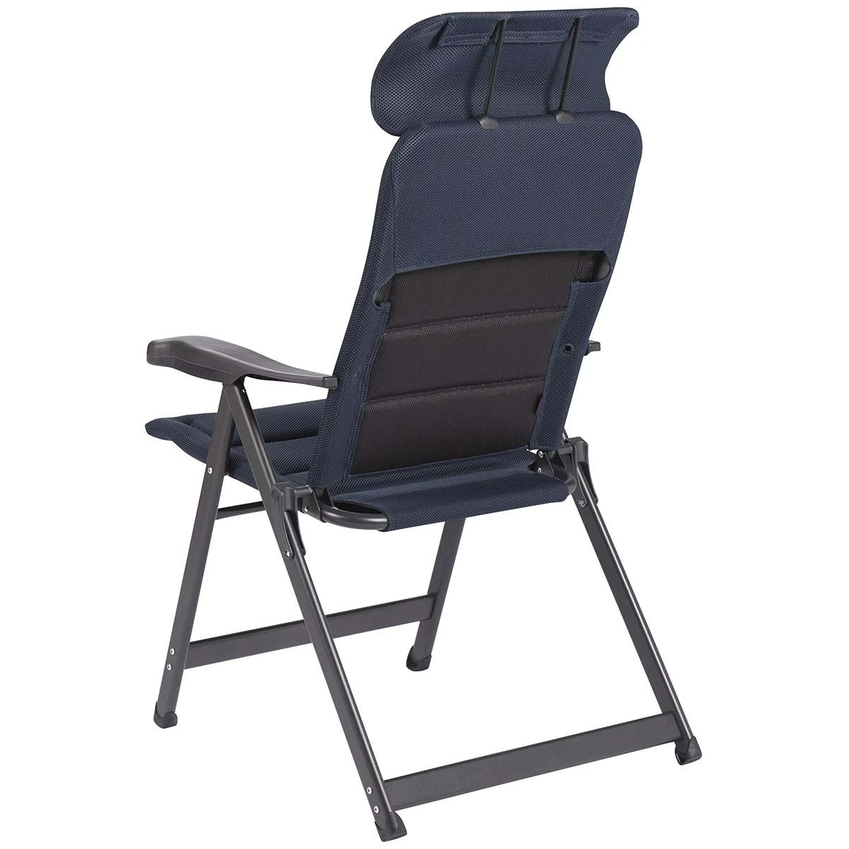 Een zeer luxe standenstoel met een verstelbare hoofdsteun. Deze stoel biedt maximaal comfort door de in 7 standen verstelbare rugleuning en de gepolsterde 3D stof. De comfortabele vulling van deze stof is extra luchtdoorlatend en houdt door de open celstructuur geen vocht vast. Hierdoor is de stoel veel sneller droog dan stoelen met een traditionele schuimvulling. Daarnaast zijn zowel de rugleuning, de zitting en de armleggers ergonomisch gevormd. De stoel is voorzien van een geanodiseerd H-frame voor extra stabiliteit en stevigheid. Ingeklapt is deze stoel zeer compact en daardoor gemakkelijk mee te nemen. Maximale belasting: 140 kilogram.
