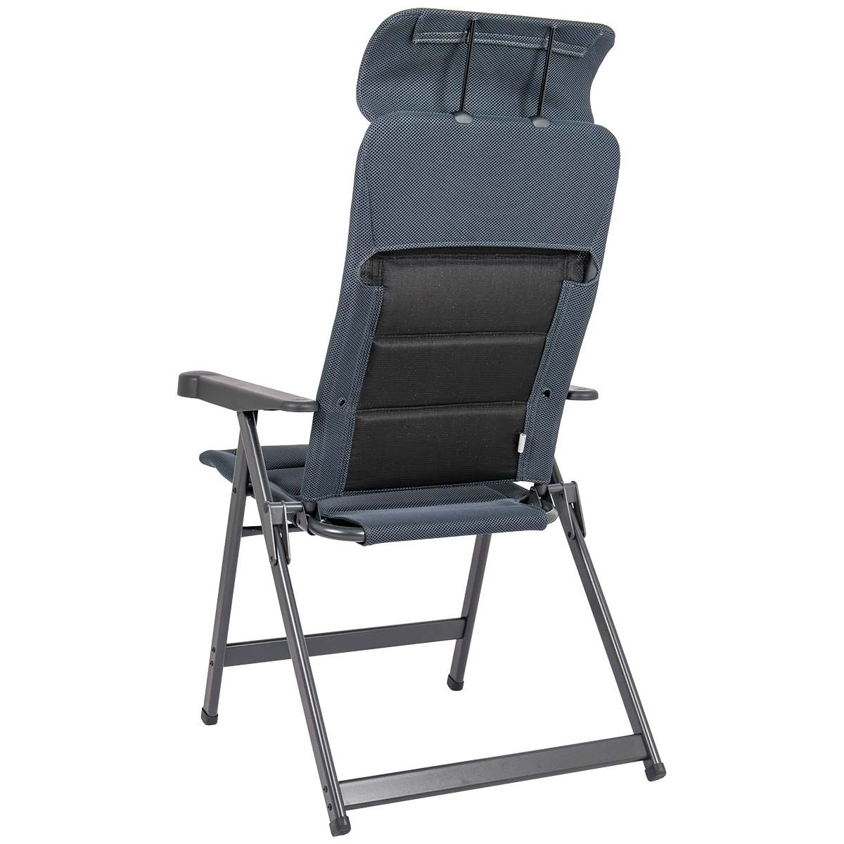 Een luxe en zeer comfortabele standenstoel met een extra lange rugleuning. Uitermate geschikt voor langere mensen! Deze stoel biedt maximaal comfort door de in 7 standen verstelbare rugleuning. Zowel de rugleuning als de armleggers zijn ergonomisch gevormd. De stoel is voorzien van een H-frame voor extra stabiliteit. De stoel is uitgerust met een gevoerde stof. De comfortabele vulling van deze stof is extra luchtdoorlatend en houdt door de open celstructuur geen vocht vast. Hierdoor kan de stoel tegen een korte regenbui en droogt het veel sneller dan stoelen met een traditionele schuimvulling. Door zijn unieke ontwerp is deze stoel zeer compact en daardoor gemakkelijk mee te nemen.