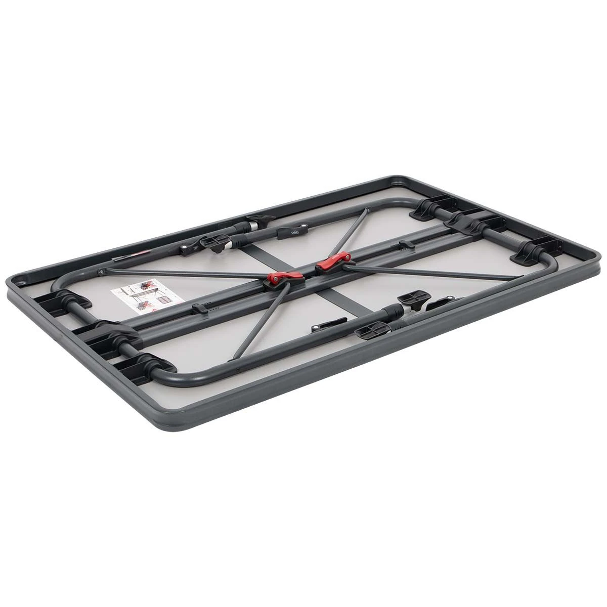 Een luxe en stijlvolle tafel. Deze lichtgewicht campingtafel is voorzien van een hittebestendig en watervast tafelblad en heeft een extra verstevigde aluminium constructie. Daarnaast zorgt de afwerking van de poten en van de tafelrand voor een stijlvolle uitstraling. De tafel beschikt over traploos verstelbare poten (52-74 cm) die zijn in te klappen, hierdoor is deze tafel eenvoudig en compact te vervoeren (ingeklapt (lxbxh): 110x70x3,8 cm). Door dat deze tafel beschikt over stabilisatie voeten, staat hij stabiel op elke ondergrond. Maximale belasting: 50 kilogram. De tafel is voorzien van een uniek in- en uit-klap mechanisme waardoor deze heel eenvoudig is op te zetten en in te klappen.
