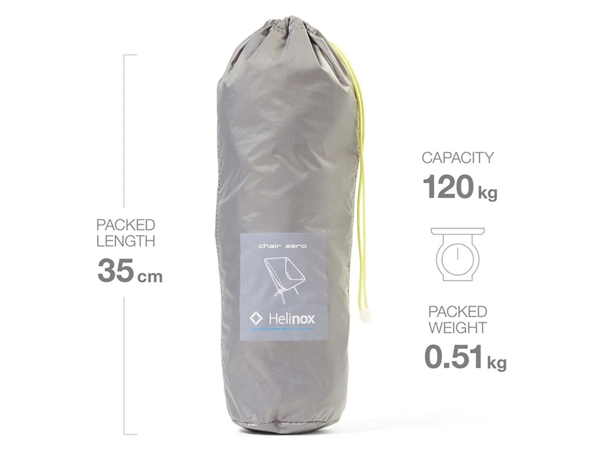 Een toonbeeld van Helinox-design, de Chair Zero is uitzonderlijk licht en verpakt, maar biedt ongeëvenaard comfort, kracht en ondersteuning. Zijn geavanceerde materialen, architectuur en constructie creëren de precieze balans tussen minimalisme en comfort. Het eigen DAC TH72M aluminiumlegering frame vormt de kern van zijn lichte prestaties en verrassende sterkte, en zijn disciplinaire ontwerp schuwt alle overbodige elementen om gewicht en omvang te verminderen. Het resultaat is een stoel die slechts 510 g weegt, tot 120 kg ondersteunt en waterfles klein verpakt, waardoor het de keuze is voor backpacken, meerdaagse kanotochten, uitgebreide fietstochten en motortochten – activiteiten waar gewichtsbesparing en volume minimaliseren van cruciaal belang zijn.