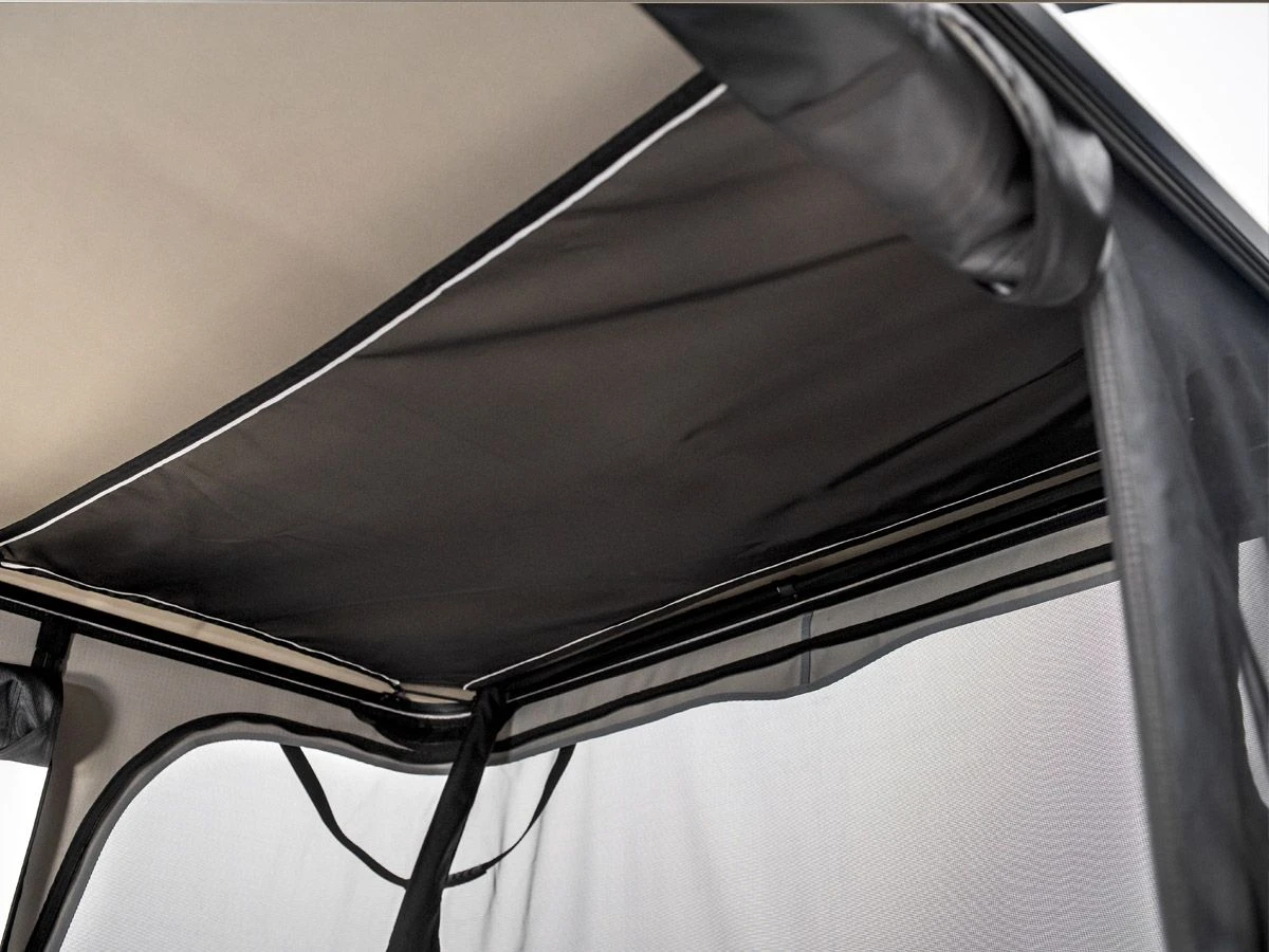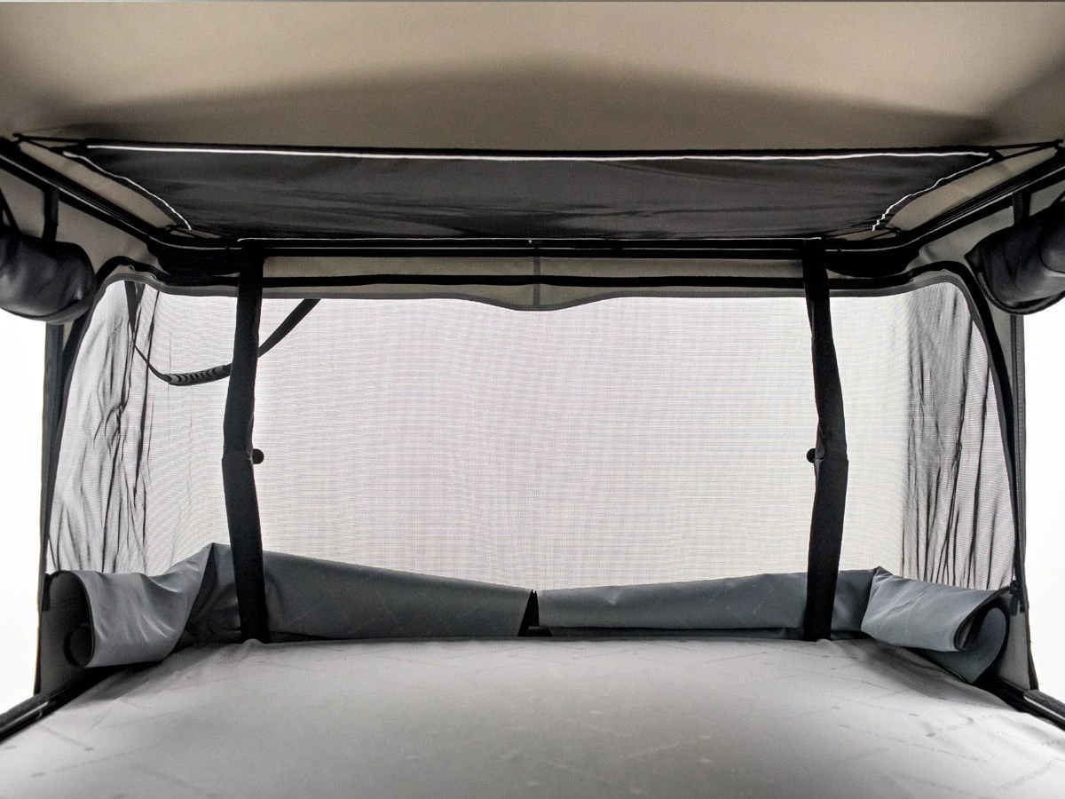 James Baroud is een autoriteit in de daktenten wereld en dat bewijzen ze met de Oddysey-serie. Ondanks zijn compacte design zijn er geen concessies gedaan in materiaal en comfort. Zo bestaat het tentdoek uit 3-laags canvas van 650 g/m². Dit stevige doek is 100% verduisterend en heeft een thermisch isolerende werking. De geïsoleerde pvc-vloer is voorzien van een comfortabel High-Density matras voor een aangename nachtrust. Omdat de Odyssey rondom is voorzien van ventilatieramen kun je bij mooi weer genieten van een 360 graden uitzicht. De deur aan de achterzijde is voorzien van raamfolie zodat je ook bij minder mooi weer kunt genieten van het uitzicht.