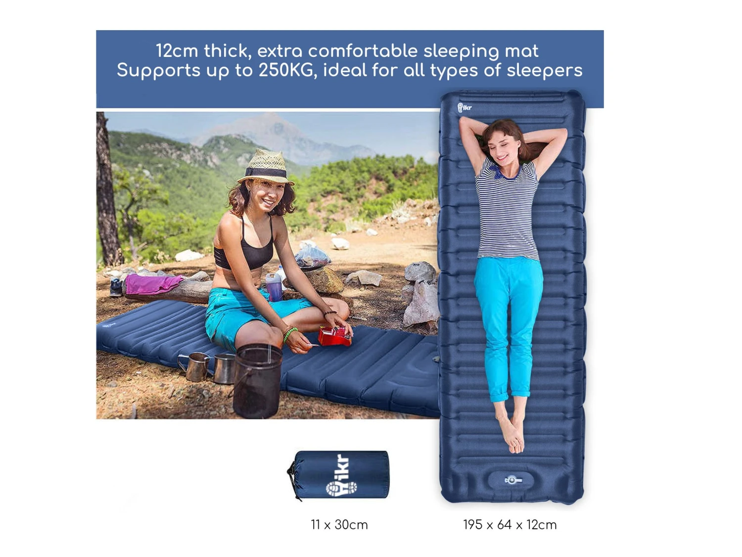 En dat is nog niet alles. Deze waterdichte slaapmat is multifunctioneel! Gebruik hem als luxe slaapmat tijdens het kamperen of als luchtmatras in het zwembad! Verder is deze Hikr slaapmat gemaakt van hoogwaardige TPU + 40D Nylon, wat zorgt voor een supersterke slaapmat die tegen een stootje kan. Het compacte pakformaat (~11cm x 30 cm) en een gewicht van slechts ~1 kg zorgen er tevens voor dat je de slaapmat moeiteloos overal mee naartoe neemt. Laat je volgende outdooravontuur maar komen!
