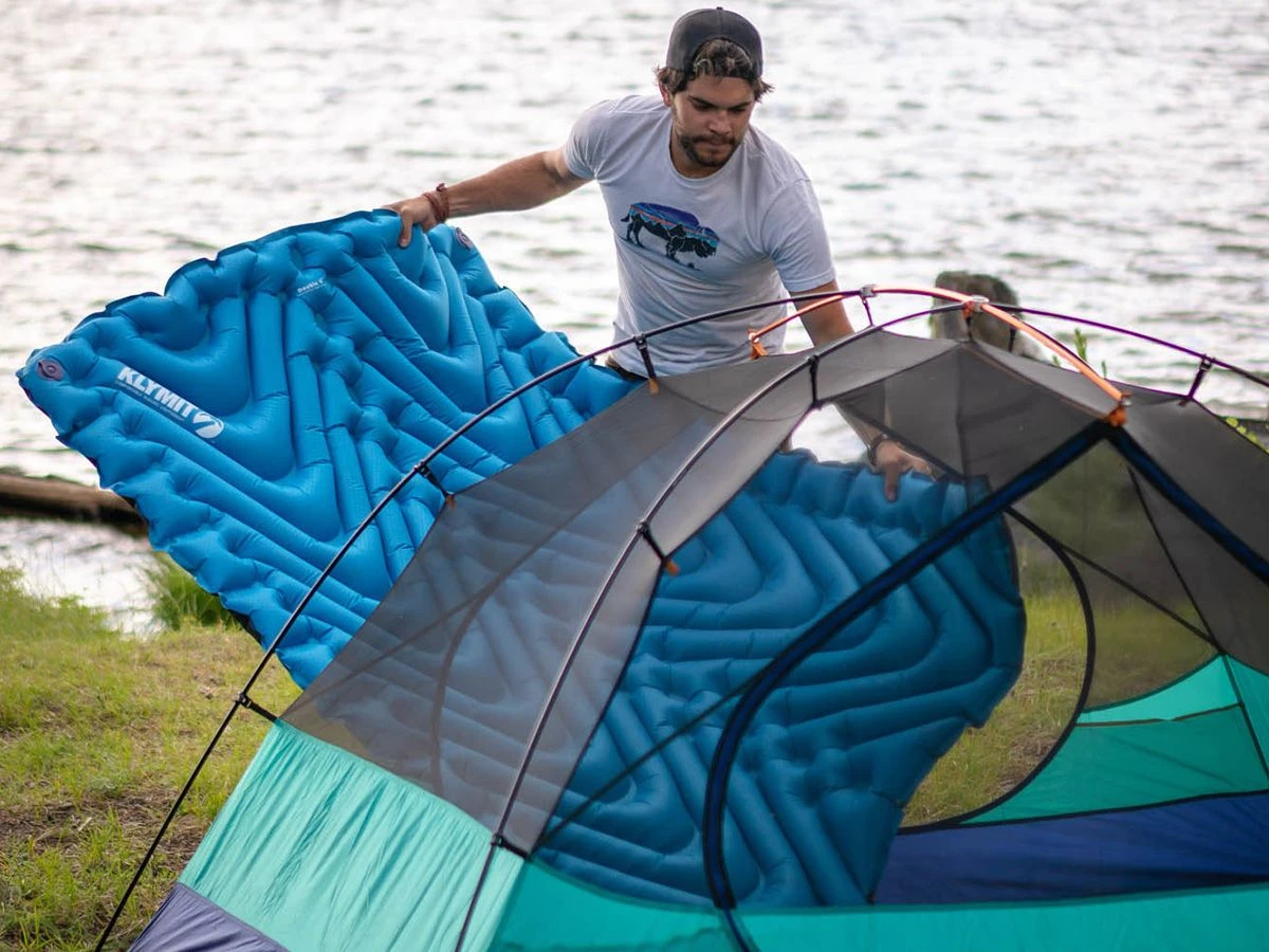 Zij-aan-zij V-kamers creëren de ideale slaapmat voor twee personen. Niet alleen biedt de Double V™ voldoende ruimte voor twee personen om comfortabel te slapen, het V-kamersysteem beperkt ook de luchtverplaatsing tussen de twee zijden – wat betekent dat als u midden in de nacht wakker wordt en beweegt, uw partner niet gestoord wordt. De Double V wordt geleverd met een handige pomp die in de opbergzak is geïntegreerd voor snel en gemakkelijk opblazen.