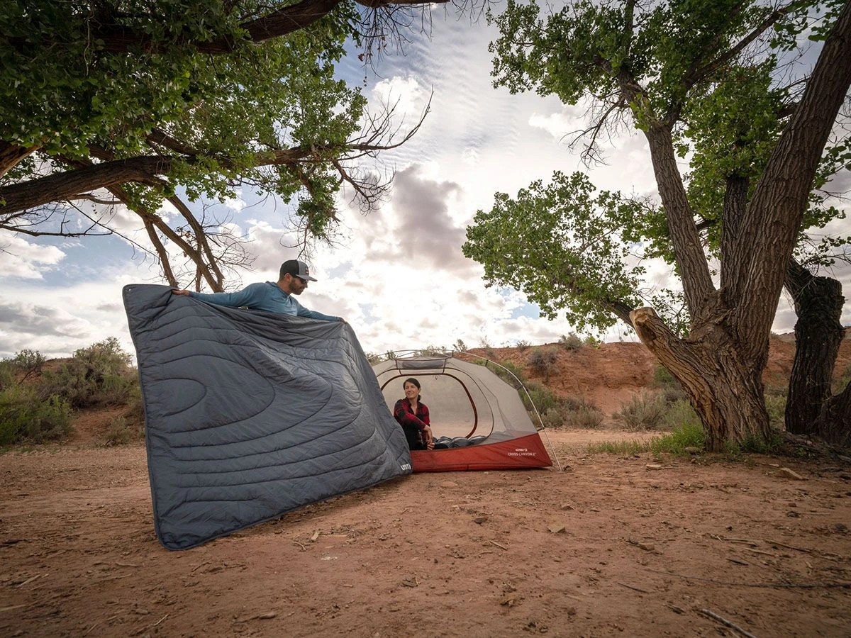 Zeg hallo tegen je nieuwe essentiële reisdeken. De Horizon Travel Blanket is de ultieme deken om overal mee naartoe te nemen. De deken heeft vier hoekpunten waarmee je de deken perfect aan de grond kunt bevestigen voor picknicks en speeldagen. Hij is gemaakt van duurzaam, waterafstotend, lichtgewicht materiaal dat klein op te bergen is. Het gewatteerde patroon houdt de synthetische isolatie op zijn plaats om je warm te houden, waar je ook gaat. Deze deken past in de auto, je rugzak of je koffer.