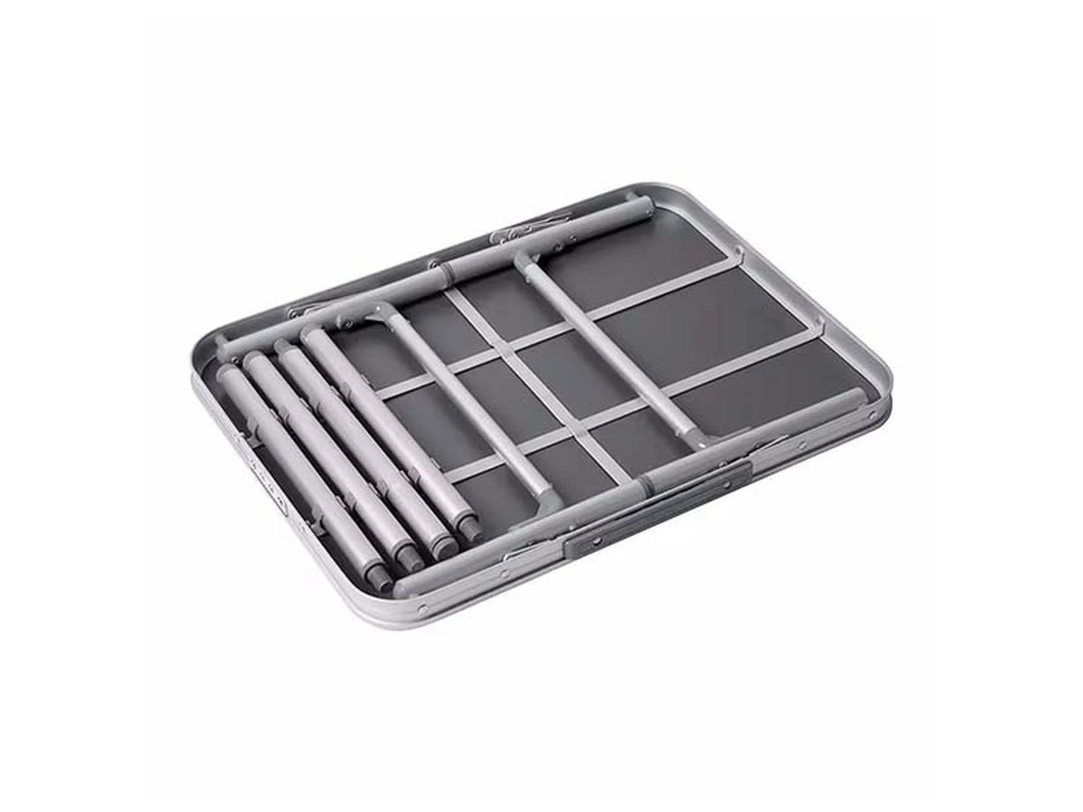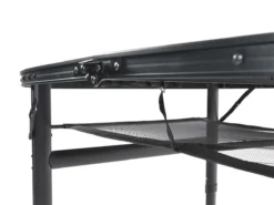 De tafel is gemaakt van stevig maar licht aluminium, waardoor hij gemakkelijk te dragen is. Dit maakt hem perfect voor gebruik onderweg, zonder dat je inlevert op stabiliteit of duurzaamheid.