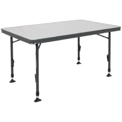 Deze tafel is ontworpen om bestand te zijn tegen verschillende weersomstandigheden. Het robuuste frame blijft stabiel, zelfs op oneffen ondergrond, waardoor hij ideaal is voor buitenactiviteiten.