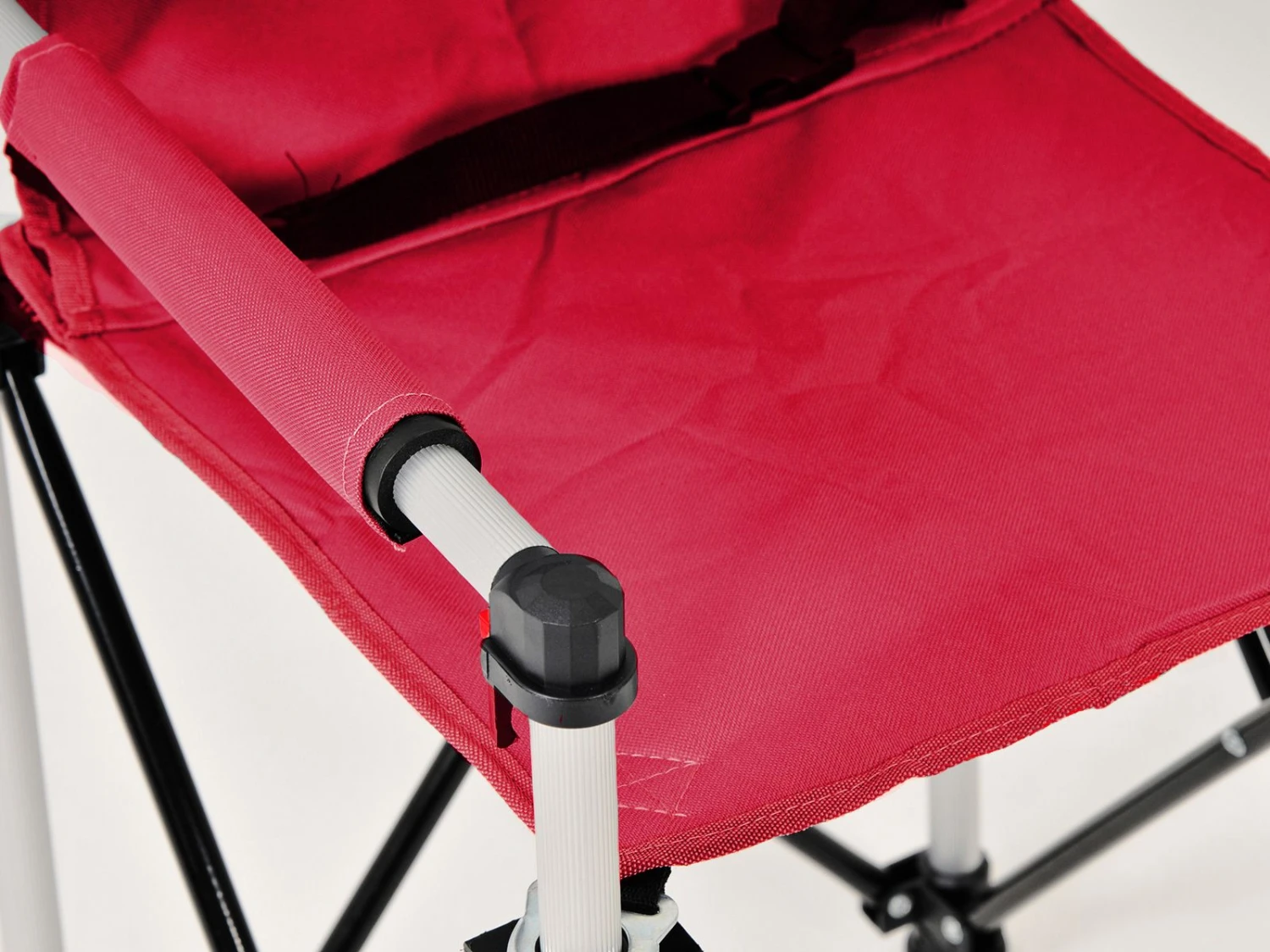 Het frame van de stoel is gemaakt van lichtgewicht aluminium en de bekleding is van polyester. De bekleding kan je er eenvoudig afhalen om deze te wassen. De stoel is compact op te vouwen en is handig mee te nemen dankzij de meegeleverde draagtas.