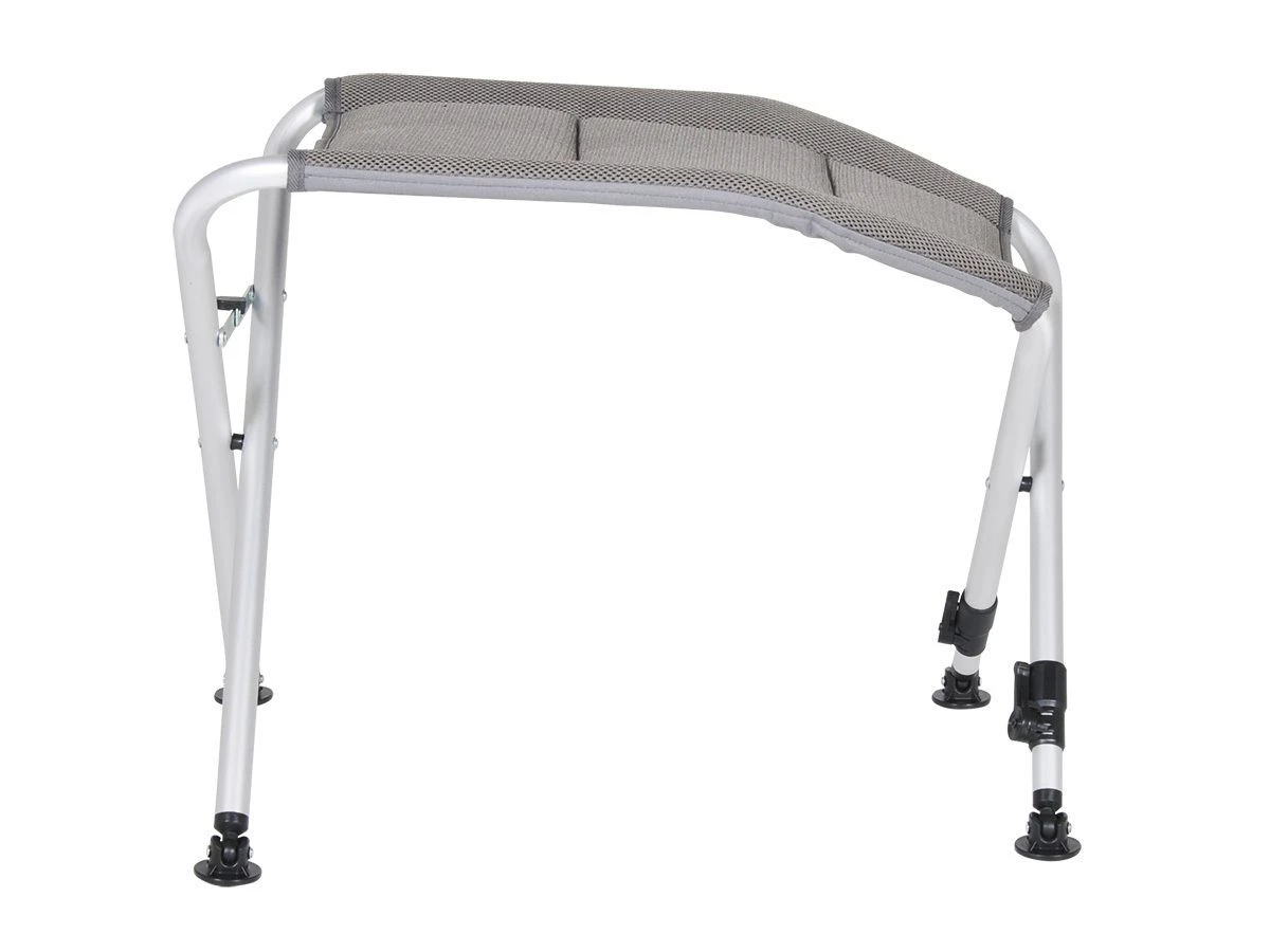 Dankzij het losstaande ontwerp hoef je de voetenbank niet aan je stoel te bevestigen. Dit geeft je de vrijheid om hem precies te positioneren zoals jij dat prettig vindt. Het stevige maar lichtgewicht aluminium frame is eenvoudig te verplaatsen, terwijl de bekleding met een open celstructuur vocht afvoert en zorgt voor comfortabele ondersteuning.