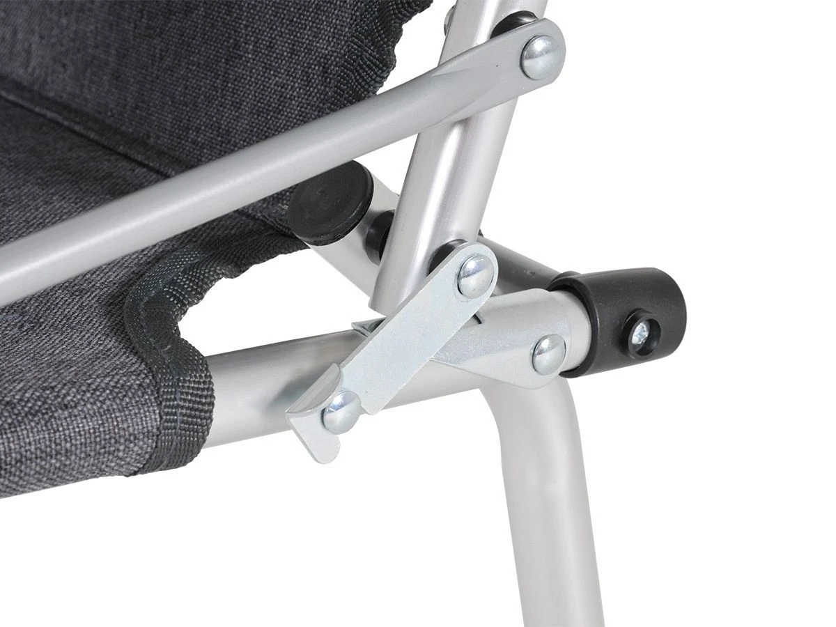De stoel is plat op te vouwen waardoor hij weinig ruimte inneemt en makkelijk vervoerd kan worden. Voor de veiligheid is de stoel voorzien van een safety-lock, dit zorgt ervoor dat de stoel niet zomaar in kan klappen!