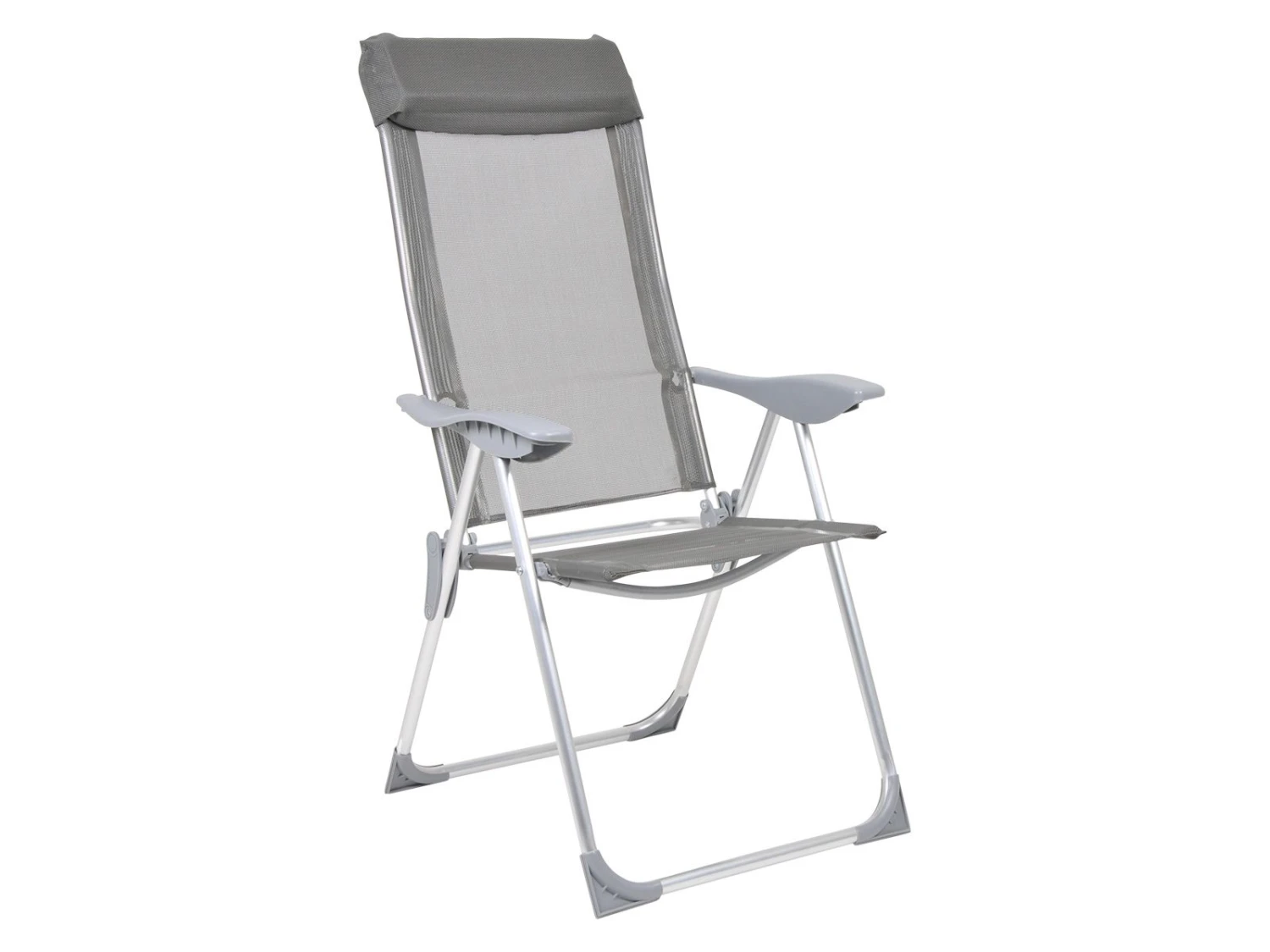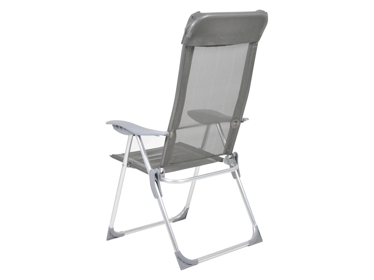 De rugleuning is verstelbaar in 5 verschillende standen en voorzien van een comfortabel hoofdkussen. Na gebruik is de stoel plat in te klappen en hij weegt slechts 3,5 kg, ideaal om mee te nemen richting de camping.