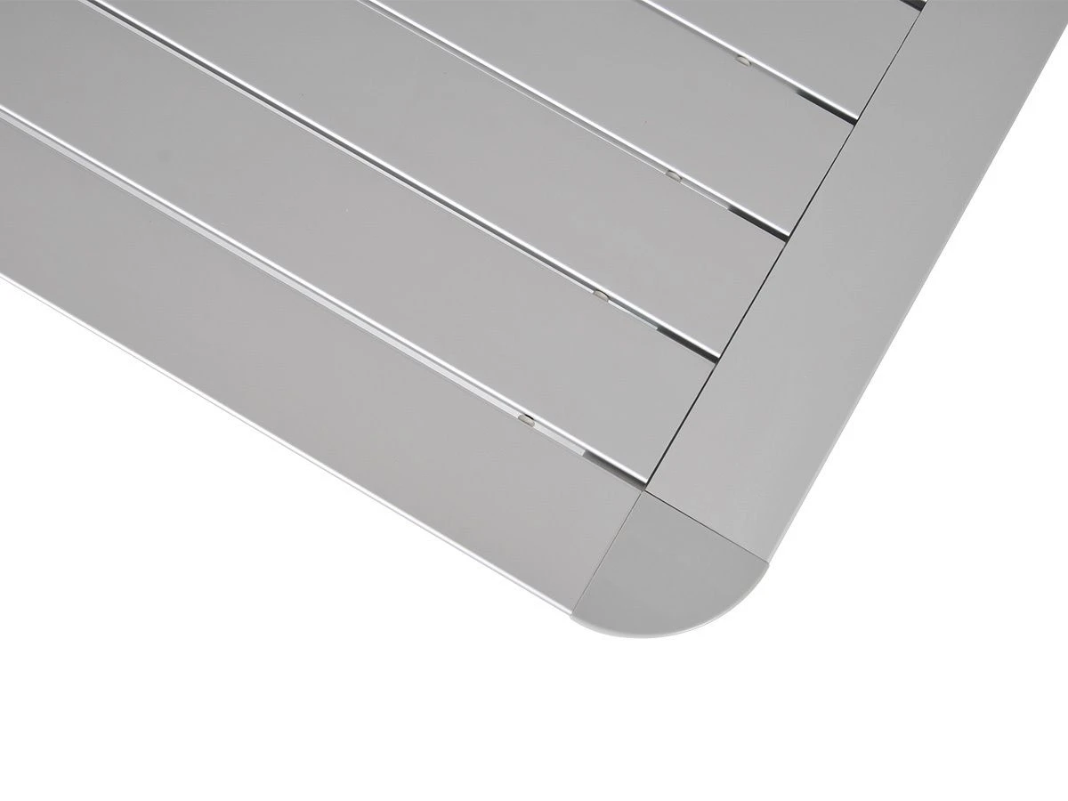 Met een afmeting van 110 x 70 x 70 cm biedt de Obelink Puglia voldoende ruimte voor verschillende campingactiviteiten. Het aluminium materiaal maakt de tafel vocht- en hittebestendig, waardoor je de Puglia zelfs als kooktafel kunt gebruiken. De tafel is maximaal belastbaar tot 30 kg, zodat je zonder zorgen je spullen erop kunt plaatsen.