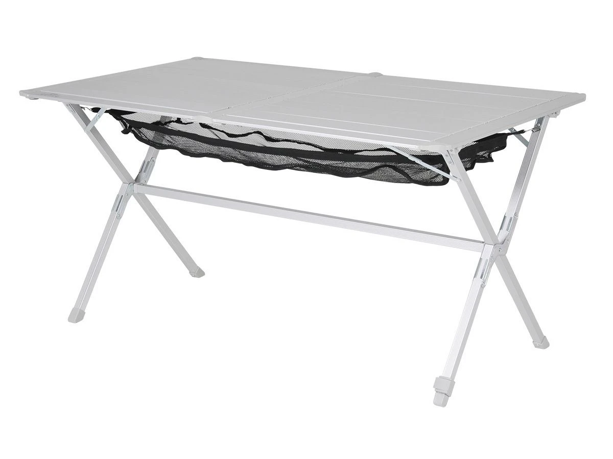 Met een afmeting van 140 x 79 x 70 cm biedt de Obelink Puglia voldoende ruimte voor verschillende campingactiviteiten. Het aluminium materiaal maakt de tafel vocht- en hittebestendig, waardoor je de Puglia zelfs als kooktafel kunt gebruiken. Daarnaast beschikt de tafel over een handig opbergnet onder het tafelblad, ideaal voor het bewaren van kleine spullen zoals keukengerei, servetten of kampeeraccessoires. De tafel is maximaal belastbaar tot 30 kg, zodat je zonder zorgen je spullen erop kunt plaatsen.