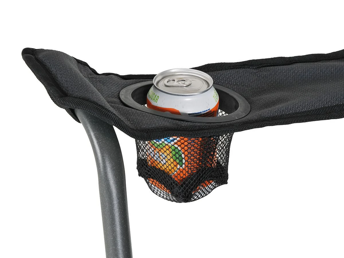 In de armleuning zit een klein koelvakje en een bekerhouder verwerkt. Ideaal, zo kun je in de bekerhouder je drankje kwijt en je volgende drankje kun je alvast bewaren in het koelvakje.