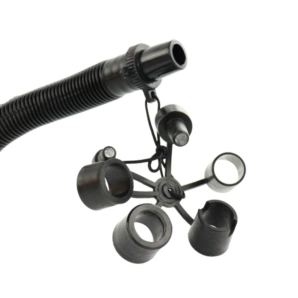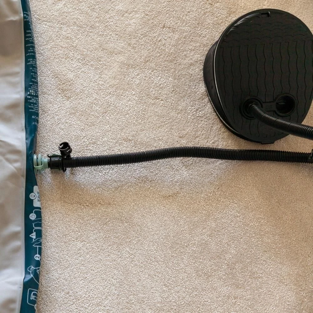 De voetpomp zwart van Orange85 is een handig hulpmiddel voor het opblazen van je campingartikelen. De pomp heeft twee functies. Je kunt je luchtbed of waterspeelgoed er mee opblazen, of leeg laten lopen. Met de 5 verschillende bijgeleverde opzetstukken past de pomp op vrijwel alle opblaasartikelen. De pomp heeft een inhoud van 7 liter.
