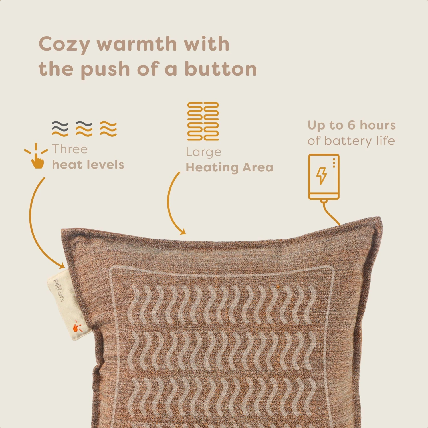 Bestel hem nu en geniet urenlang van warmte en het comfort met het draadloze warmtekussen van Pleafs®.