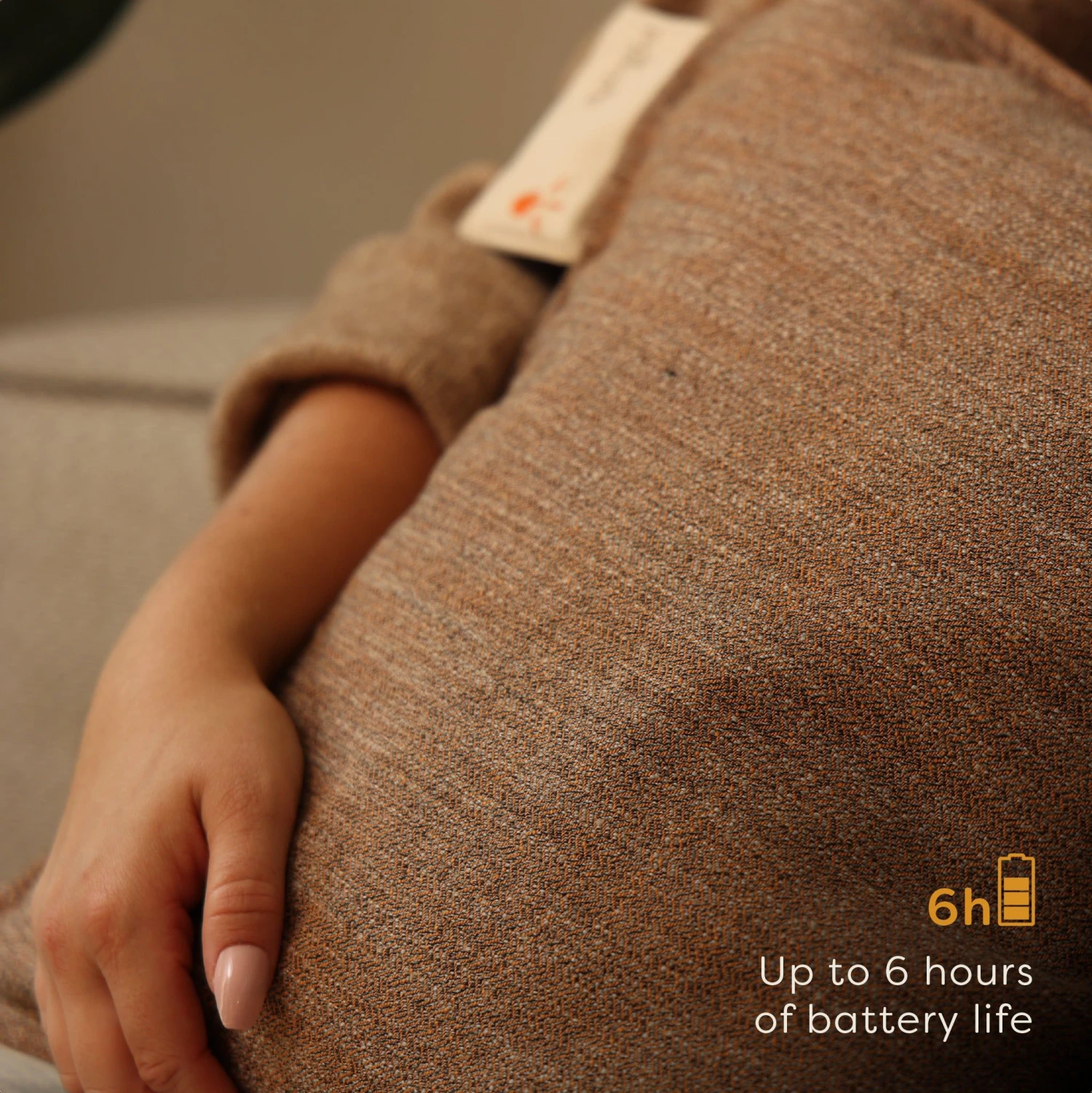Je kunt het draadloze Pleafs® warmtekussen in de kleur Spiced Cider overal mee naar toe te nemen. Gebruik het thuis, op kantoor of zelfs tijdens het reizen! Je kunt namelijk vrijelijk bewegen zonder vast te zitten aan kabels en je hoeft niet meer te zoeken naar een stopcontact. De lange batterijduur tot wel zes uur, zorgt ervoor dat je lang kunt genieten van de warmte en het comfort.