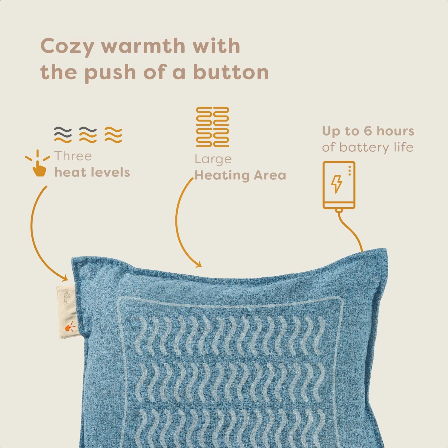 Dankzij het draadloze ontwerp is het mogelijk om dit Pleafs® warmtekussen in de kleur Shadow Blue overal mee naar toe te nemen. Gebruik het thuis, op kantoor of zelfs tijdens het reizen! Je kunt vrijelijk bewegen zonder vast te zitten aan kabels en je hoeft niet meer te zoeken naar een stopcontact. Bovendien kun je met de lange batterijduur tot wel zes uur lang genieten van de warmte en hoef je het kussen niet zo vaak op te laden.