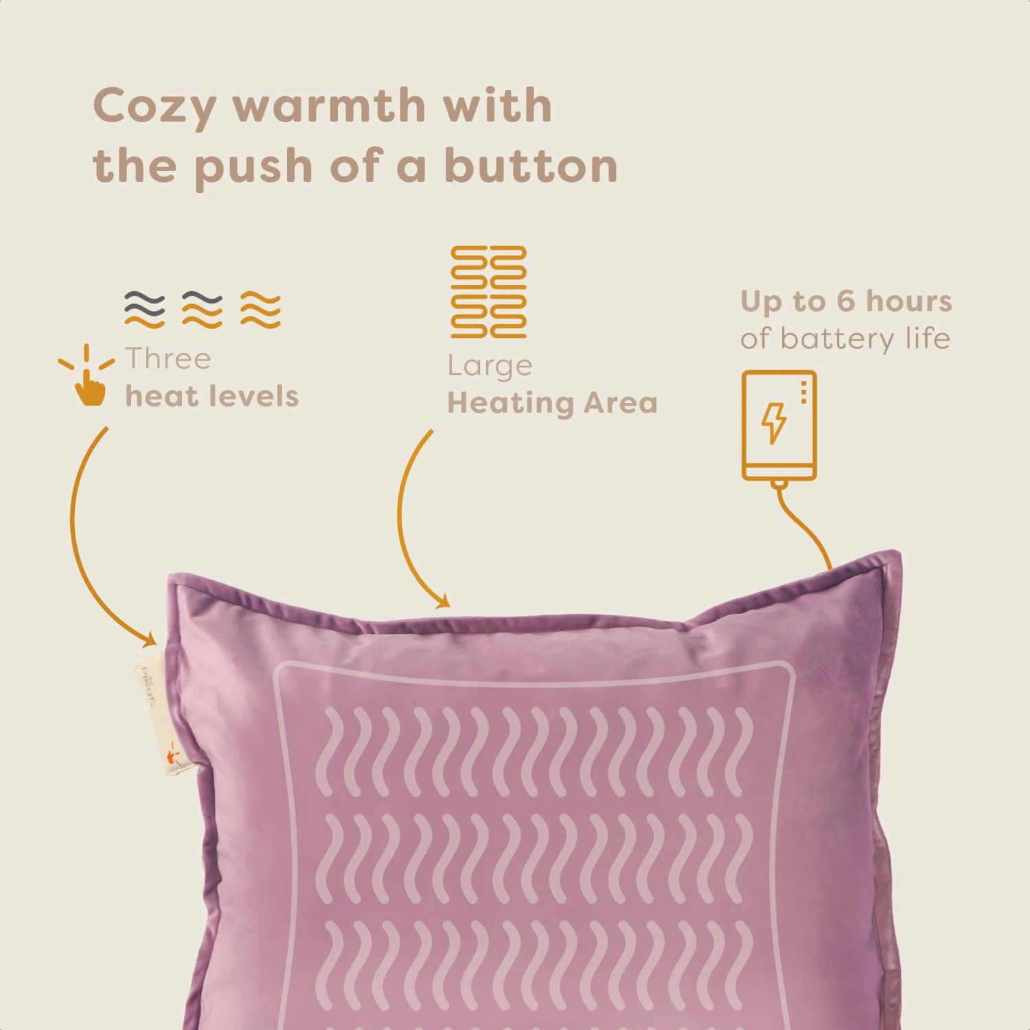 Dit warmtekussen in de kleur Hothouse Orchid is draadloos en daardoor makkelijk overal mee naar toe te nemen! Je kunt vrijelijk bewegen zonder vast te zitten aan kabels en je hoeft niet meer te zoeken naar een stopcontact Gebruik het kussen thuis, op kantoor of zelfs tijdens het reizen! Bovendien kun je met de lange batterijduur van wel zes uur, lang genieten van de warmte.