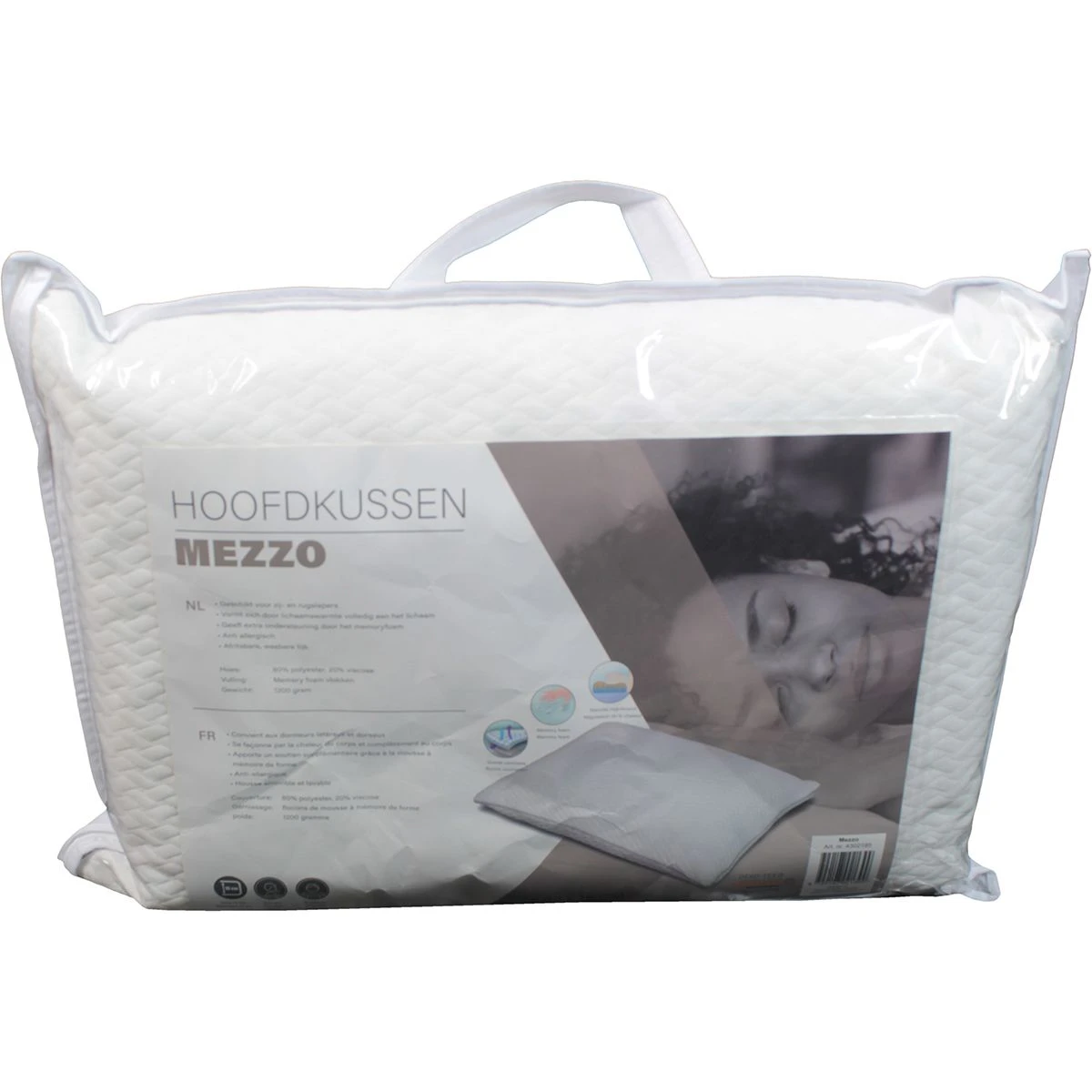 Polydaun traagschuim hoofdkussen 60x50x10 cm. De Traagschuim hoofdkussen zorgt voor een optimale ondersteuning voor de nek- en schouders. Traagschuim vormt zich door de lichaamswarmte volledig naar het lichaam. Hierdoor werkt het druk verlagend en zorgt voor een complete ontspanning van de spieren, ook wordt de bloedcirculatie verbetert en het aantal drukpunten verminderd. De 80% polyester en 20% katoen tijk is afneembaar en eenvoudig wasbaar. De vulling is gevuld met 1200 gram traagfoam vlokken