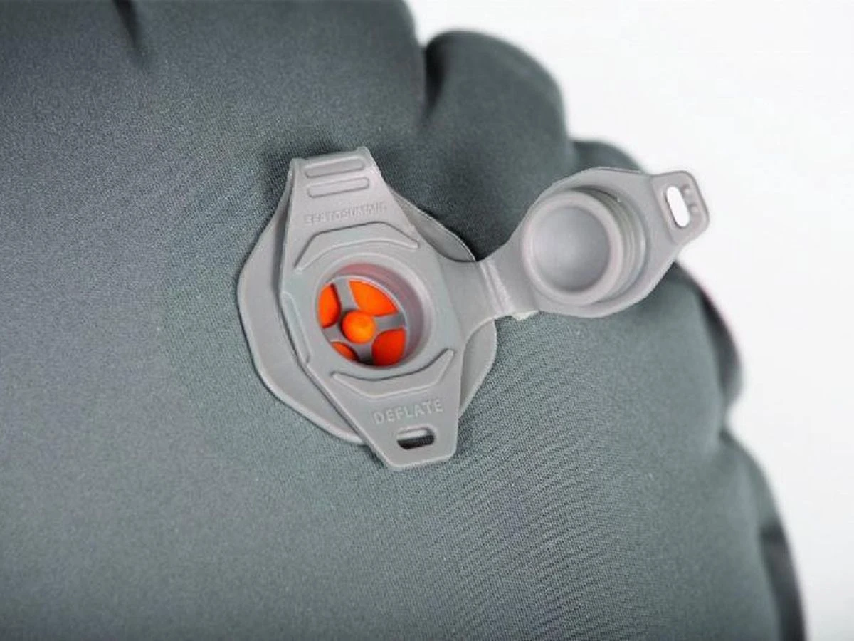 Bovendien maakt het multifunctionele ventiel het opblazen en leeg laten lopen eenvoudig, en het **Pillow Lock-systeem** zorgt ervoor dat het kussen stevig op je slaapmat blijft liggen.