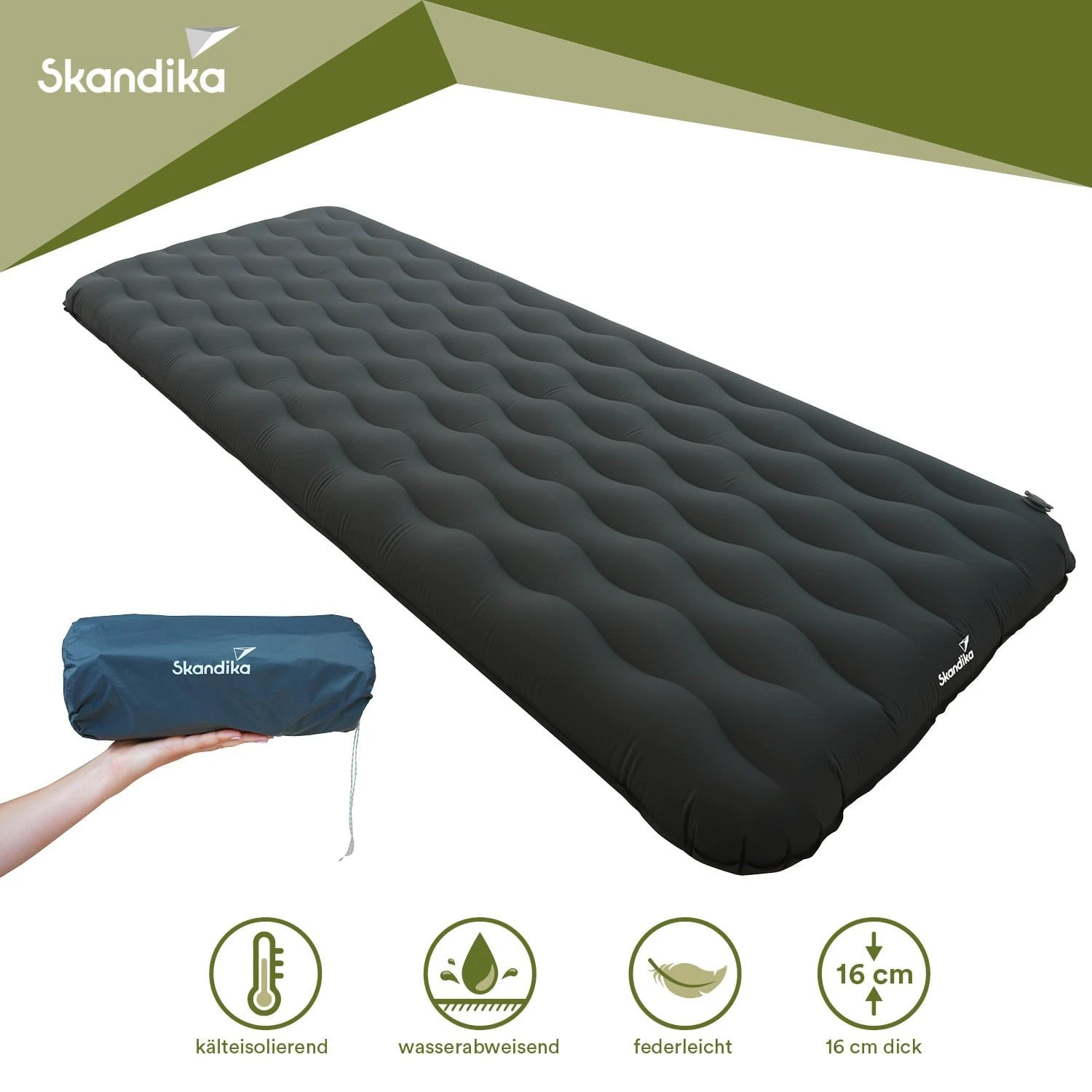 Een rustige en vooral comfortabele nachtrust is belangrijk om positieve herinneringen op te halen aan avonturen in de buitenlucht! Het vinden van een evenwicht tussen het verlangen naar comfort en het verlangen naar een laag gewicht en een kleine pakmaat is echter niet zo eenvoudig…. Met de slaapmatten van de Skandika Air serie hebben we dat probleem slim opgelost! De opblaasbare matrassen zijn niet alleen uiterst comfortabel, maar hebben ook een zeer kleine pakmaat en zijn superlicht.