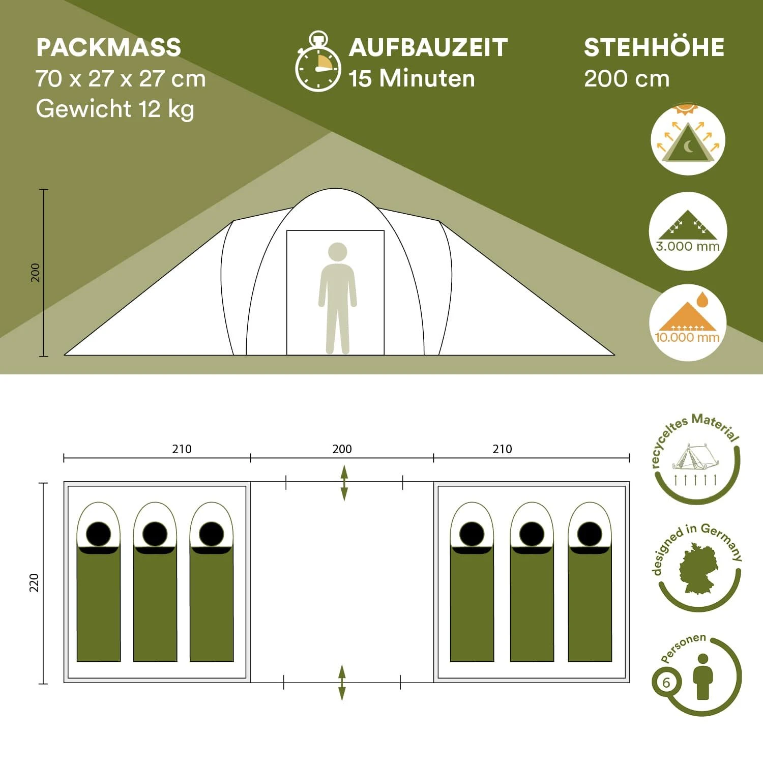 Skandika Hammerfest 6 Sleeper Protect Tent in grijs/blauw