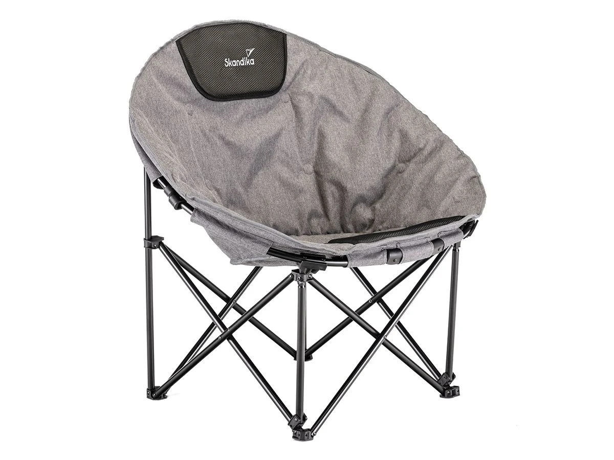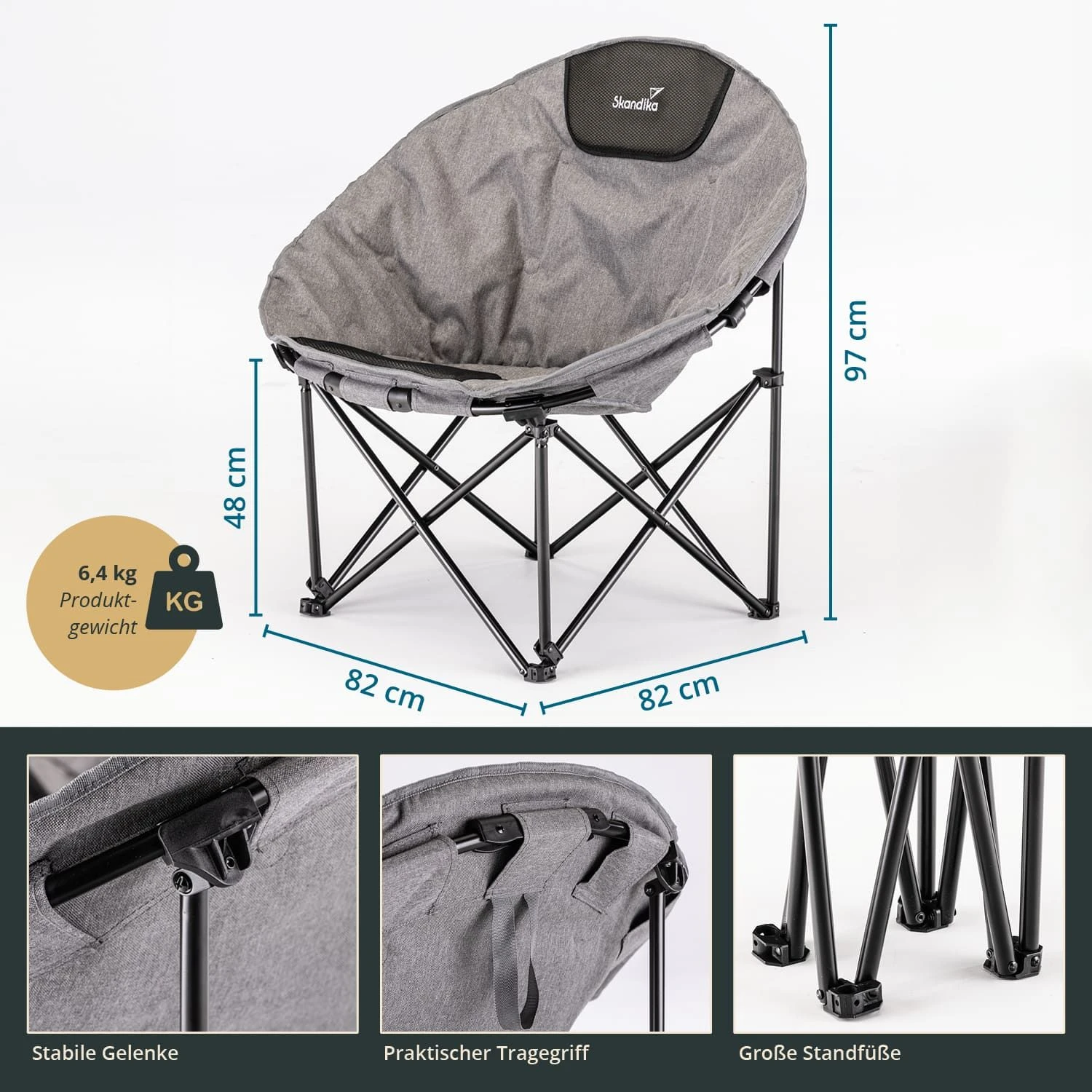 De bijzonder grote, ronde zitting van deze XL-campeerstoel is aangenaam zacht opgevuld en het slijtvaste materiaal is ook gemakkelijk schoon te maken – gewoon afnemen met een vochtige doek en de campingstoel ziet er weer fris uit.