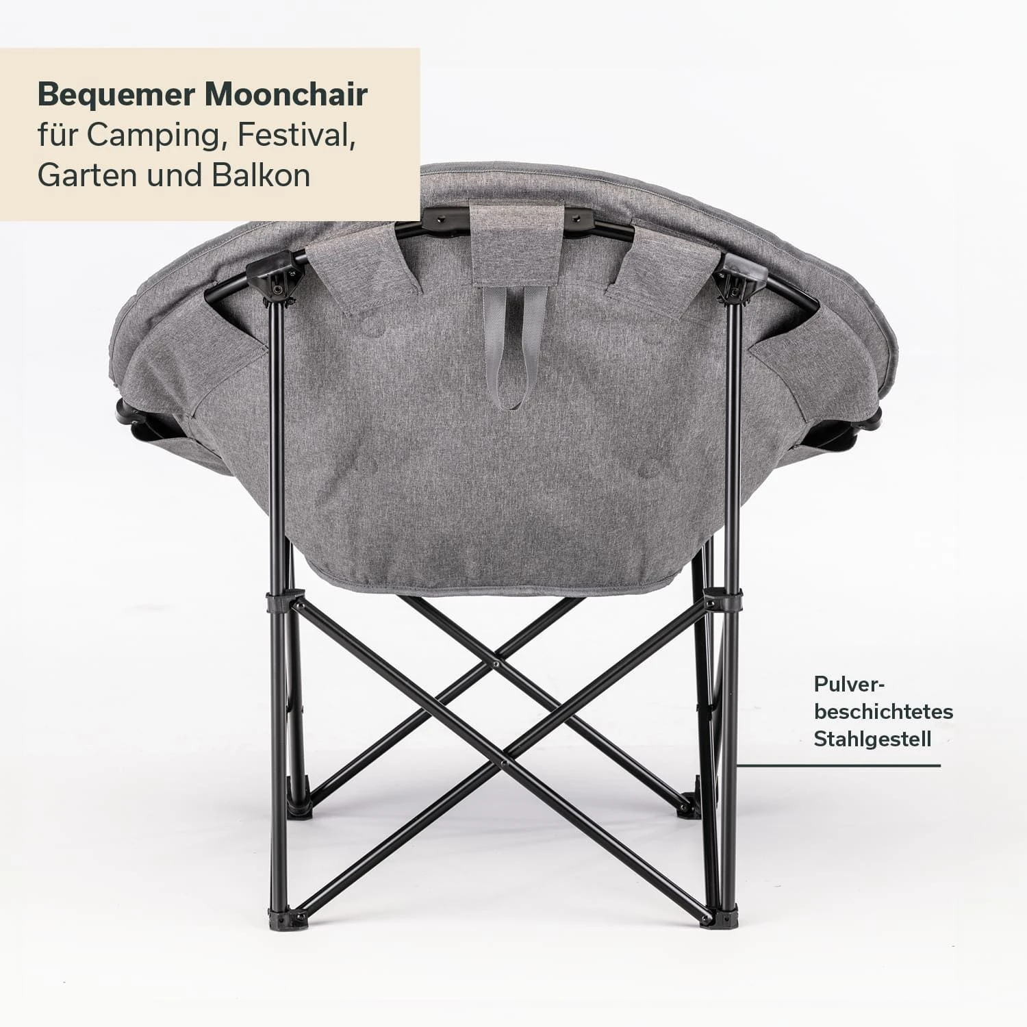 Grote poten op het frame voorkomen dat de stoel snel wegzakt op zachte oppervlakken en een grote riem achter de rugleuning maakt het gemakkelijker om de stoel te dragen als hij is opgezet. Er is ook een kleinere versie van de XL Moonchair verkrijgbaar.