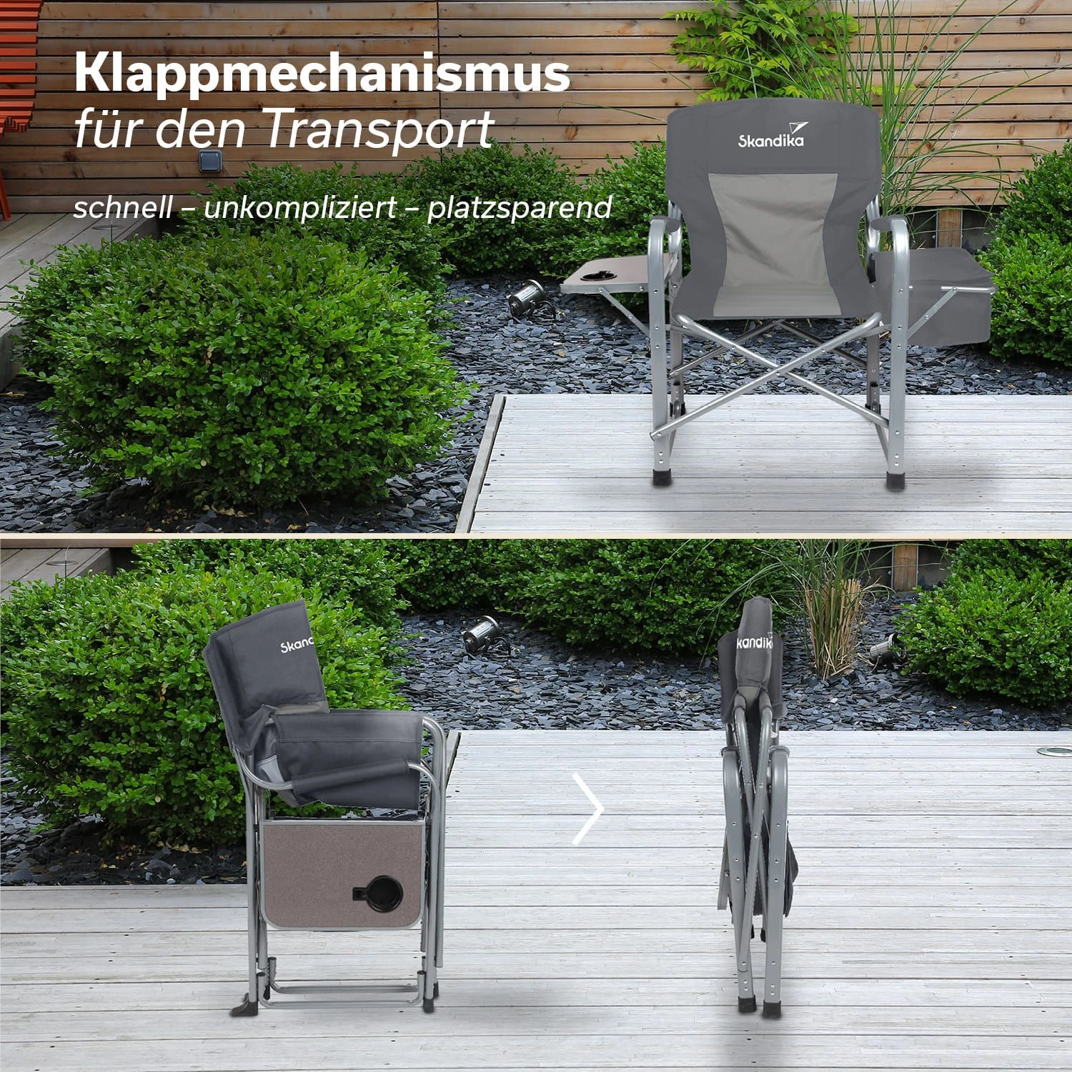 De Skandika Tepsa is een campingstoel in een comfortabele regisseursstoelvorm die vele praktische extra’s biedt. Chique design wordt gecombineerd met hoge stabiliteit, goed comfort en uiterst eenvoudige bediening. Perfect voor knusse buitenavonturen…