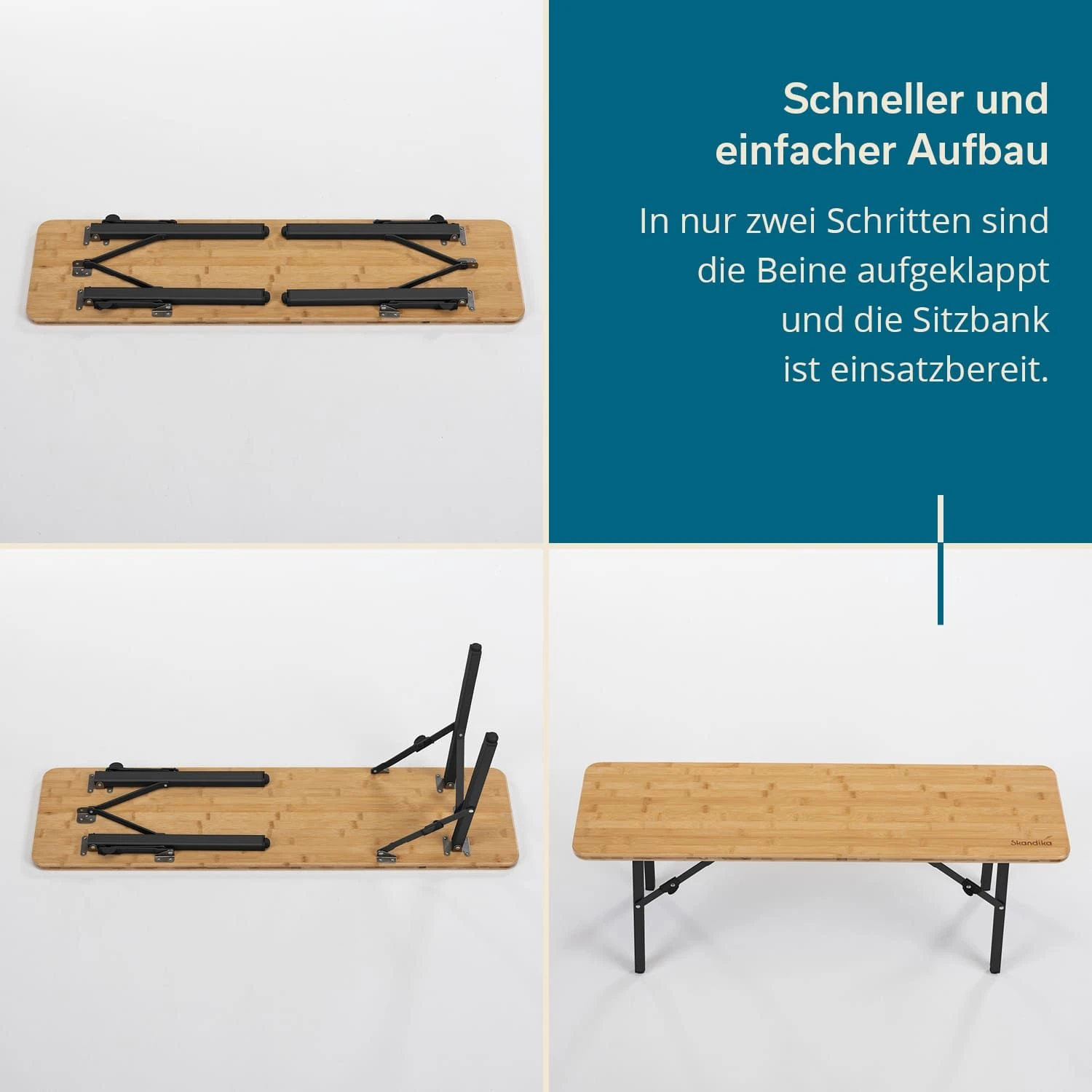 Dankzij de vouwfunctie van de poten kunnen de banken in een handomdraai en zonder gereedschap worden opgezet. Fijn afstelbare poten die losgeschroefd kunnen worden helpen bij het egaliseren van oneffen vloeren en voorkomen wiebelen.