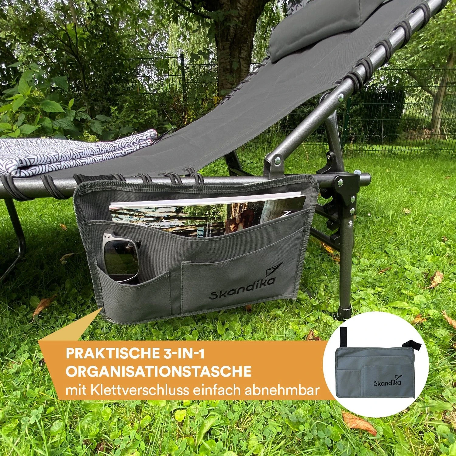 De ligstoel is perfect voor het terras of de tuin thuis, maar ook voor gebruik op de camping, het strand of festival.