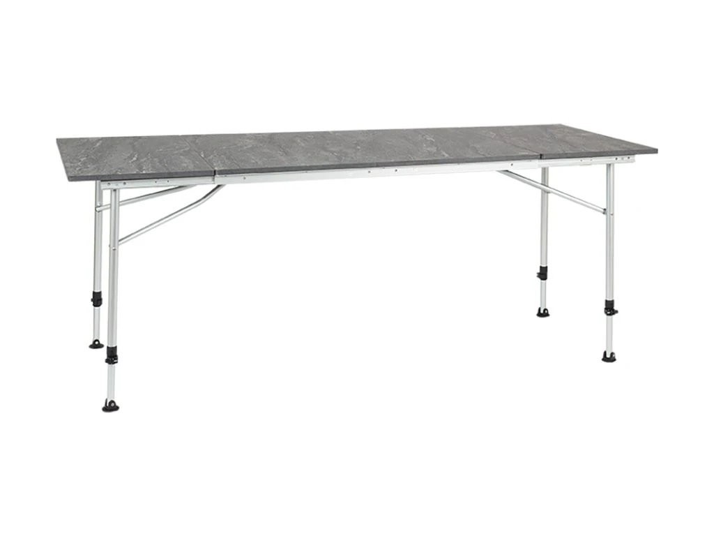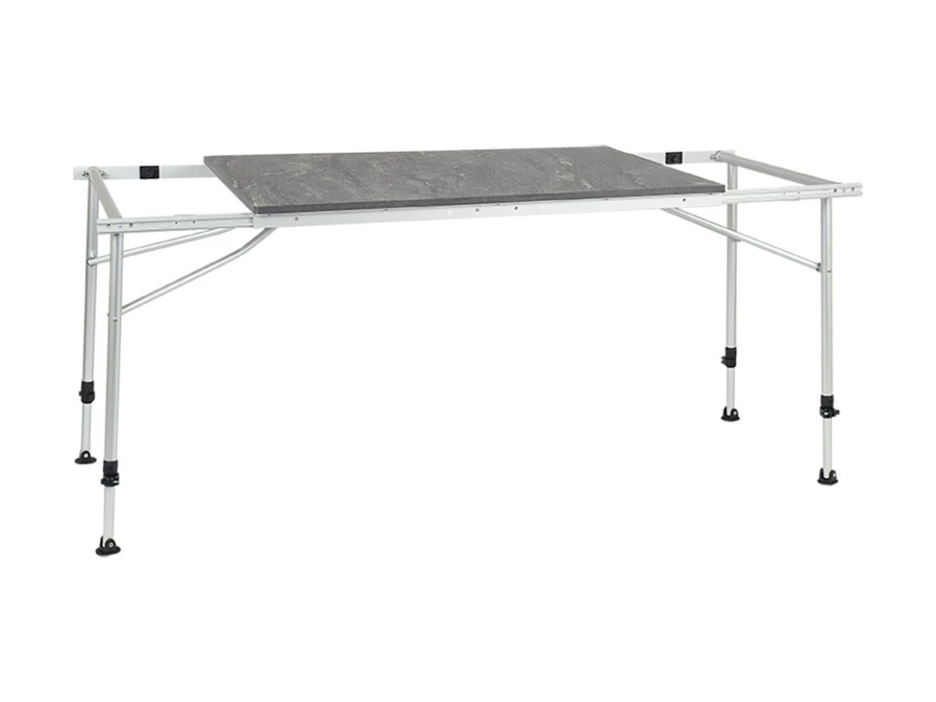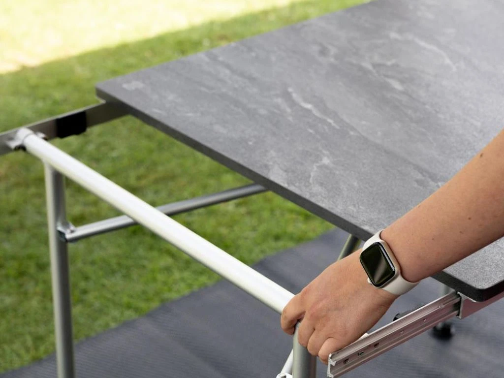 Ga je met een grote groep kamperen, maar beschik je over weinig ruimte? Of heb je graag lekker veel ruimte aan tafel? De Sorrento tafel verleng je eenvoudig door de losse delen uit te schuiven. Hierdoor beschik je over een grote tafel, maar dankzij zijn compacte formaat neemt hij niet veel plek in in jouw caravan, camper of auto. De tafel is uitschuifbaar van 100 cm tot 140 cm of 180 cm. De tafel beschikt over een extreem lichtgewicht honeycomb tafelblad, die kras- en hittebestendig tot 120 °C is. Daarbij is de tafel in hoogte verstelbaar door middel van snel aansluitingen. Je bepaalt dus zelf de gewenste lengte en hoogte van de tafel. Zo kan iedereen gezellig aanschuiven.