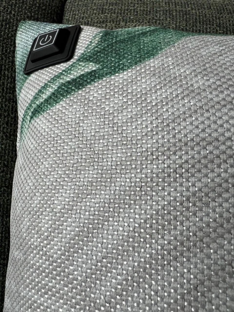 De kussenhoes en knop zijn spatwaterbestendig en kunnen met een vochtige doek gewassen worden.