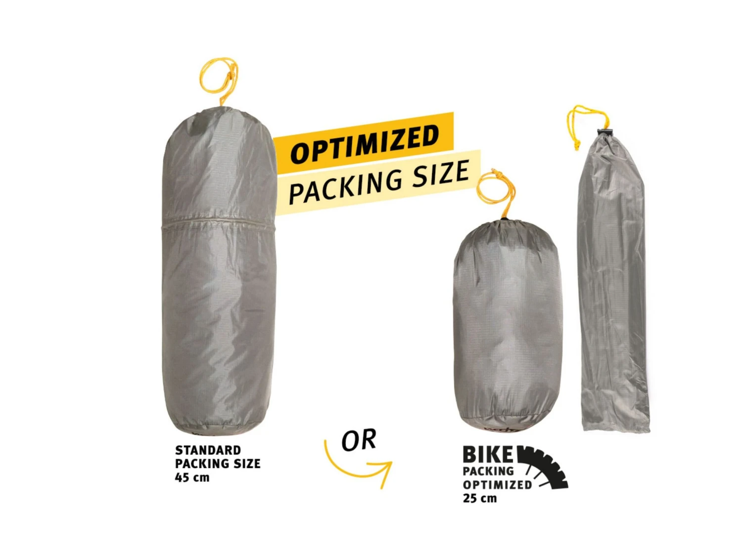 De Venture 1 is een vrijstaande geodetische tent voor één persoon – inclusief apsis. Twee aluminium knopen op de palen zorgen voor een goede windstabiliteit. Eerst wordt de binnentent van de Venture opgezet. De extra boog met stokken vormt de voortent zodra de buitentent eroverheen gespannen is. Voor bescherming tegen licht weer kan de buitentent ook los worden opgezet met behulp van het grondzeil. De binnentent is voorzien van horren in de deuren en aan het voeteneinde en hoofdeinde. Drie extra zakken in de binnentent zorgen ervoor dat alles netjes blijft en bieden ruimte voor kleine spullen die anders rondslingeren.
