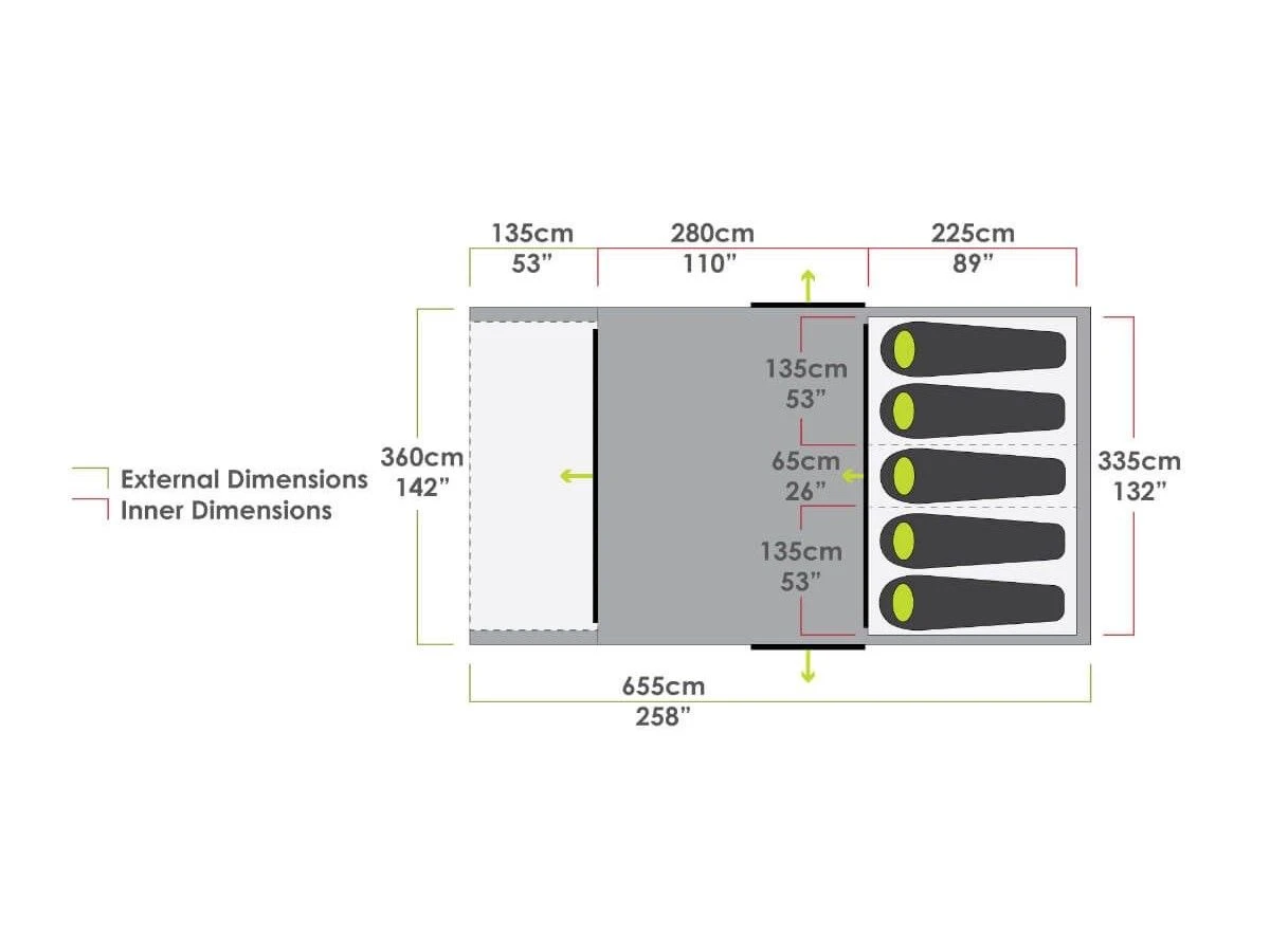 Deze EVO TL V2 is zorgvuldig ontworpen voor comfort en flexabiliteit. Met een ruimtelijke en met volledige stahoogte in de leefruimte, grote luifelruimte en flexibele slaapcabines. Geen wonder dus dat deze tent zo populair is bij families en kleine groepen. De afmetingen,layout en het opblaasbare frame is perfect voor een kleine familie. En door de extra optie van het linken met de Aerobase 3 voor extra overdekte ruimte een absolute winnaar!!