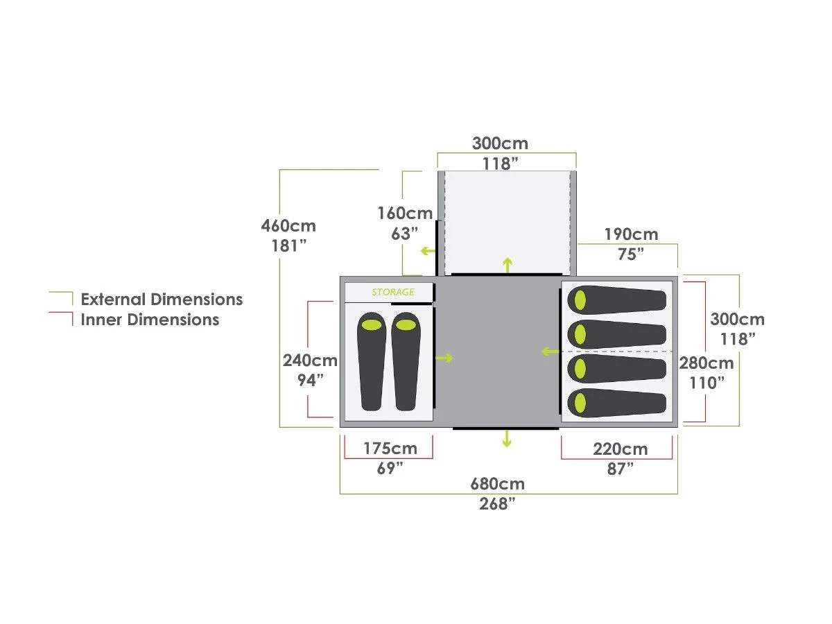 Geniet van de superieure kenmerken, privacy en opzetgemak van onze nieuwe Pro II V2 air tent. Deze opblaasbare tent met het centrale kruis buizensysteem geeft u verbeterde stabiliteit en een grote leefruimte en veel privacy in de twee slaapcabines. Aan de luifel kunt u ofwel een optionele awningwallset ter afsluiting of een Aerobase shelter ter vergroting van de leefruimet bevestigen door middel van de links. De Pro II V2 air tent is de perfecte oplossing voor de familie die comfortabel wil kamperen en ook van hun eigen ruimte wil genieten. U voelt zich een Pro als u deze tent in een paar minuiten heeft opgezet!